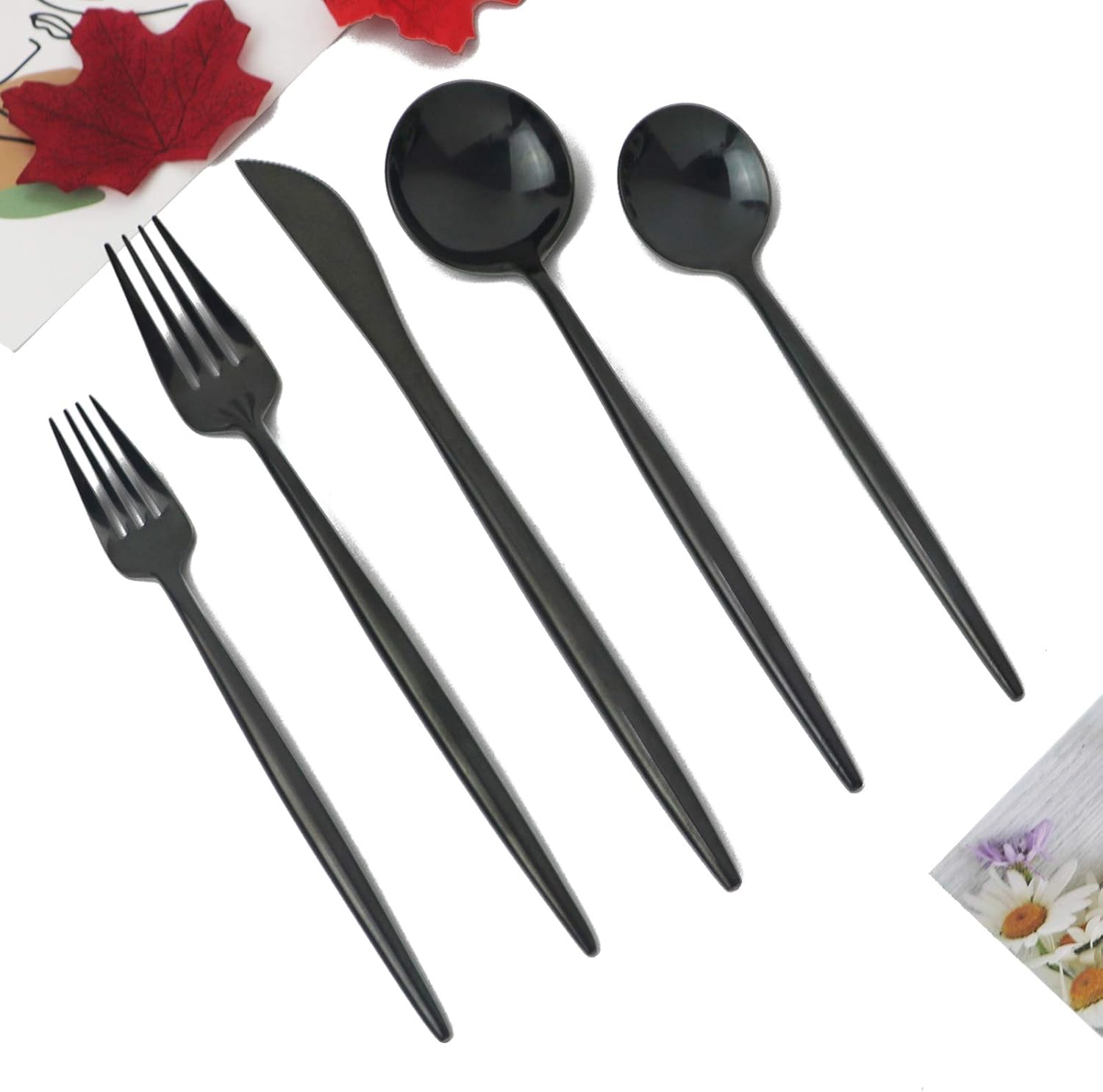 JASHII 20 Pieces Flatware Set, 18/10 Stainless Steel Utensils, Service for 4, Heavy Duty Silverware Gift, Dishwasher Safe, Mirror Polished Dinner Knife, Fork, Spoon for Restaurant (Black)