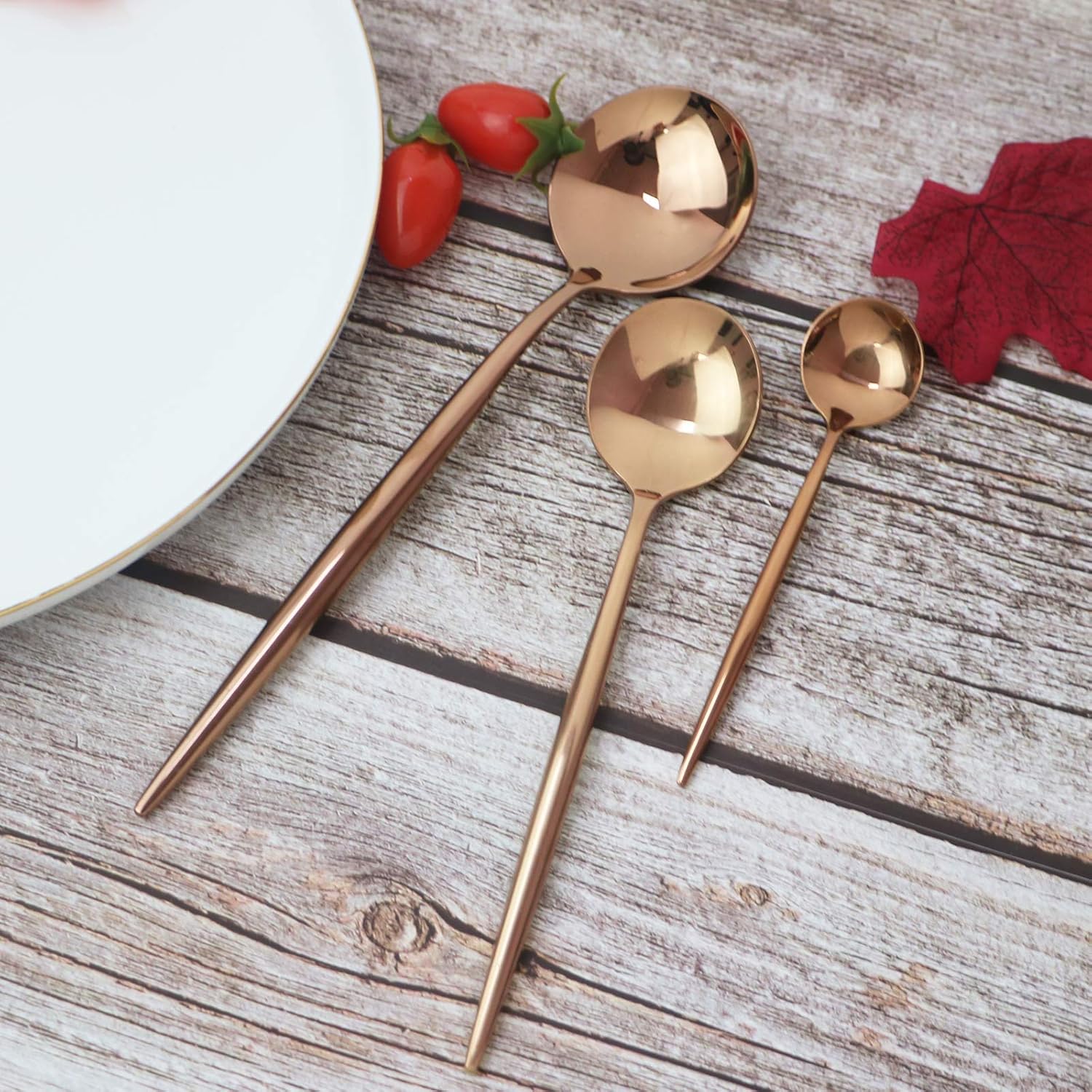 JASHII 24 Pieces Cutlery Flatware Set 304 Stainless Steel Home Kitchen Set, Mirror Polished, Knife/Fork/Spoon, Modern Elegant Tableware Set for Party, Christmas, Dinner (Rose gold)