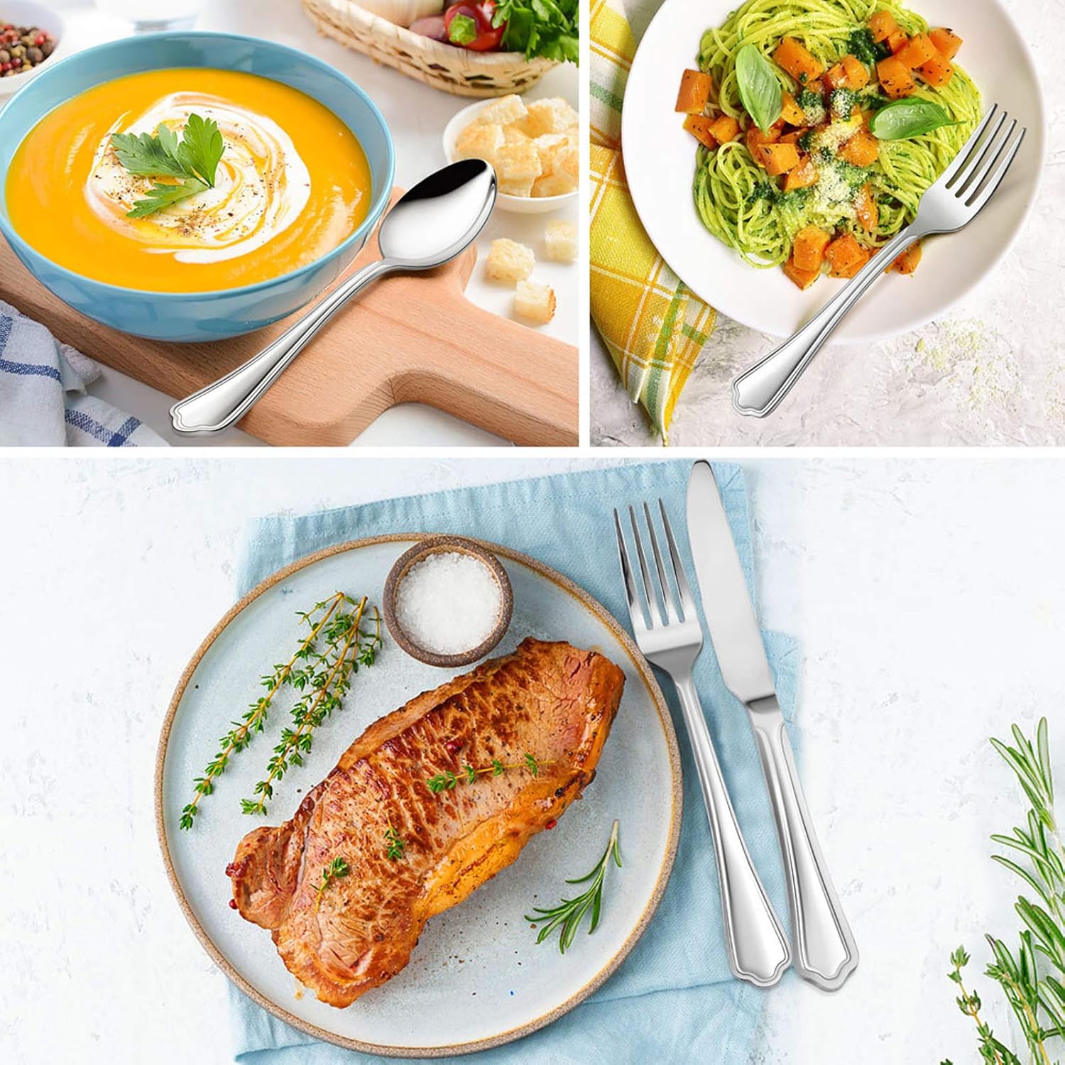 • SERVICE FOR 12 - E-far 60pcs stainless steel silverware set includes 12 Dinner Forks, 12 Dinner Spoons, 12 Dinner Knives, 12 Teaspoons and 12 Salad Forks, Basic silverware set for both casual and formal occasions use