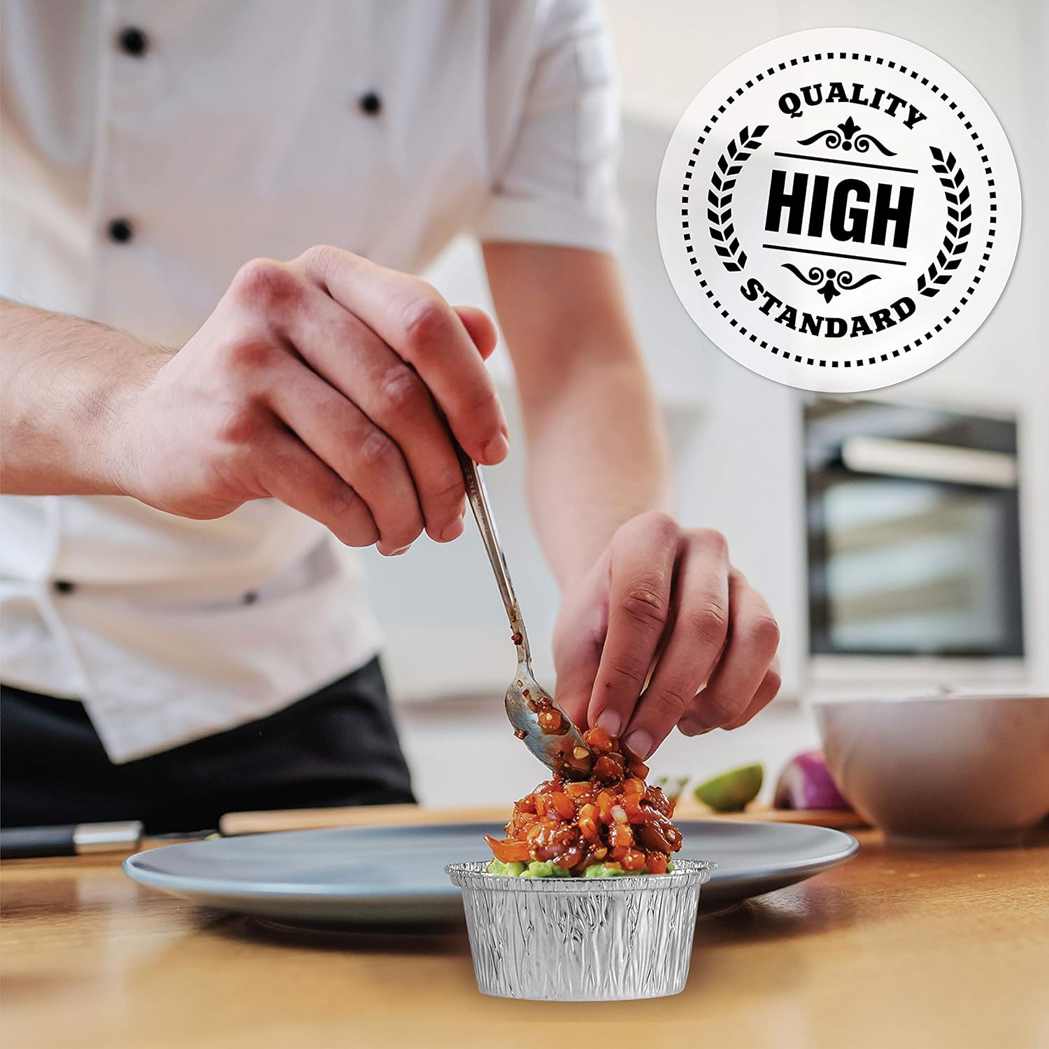 PLASTICPRO 3.5'' Inch Round Ramekins Muffin Cups Tin Foil Cupcake Pans Disposable Aluminum, Freezer & Oven Safe Pack of 50