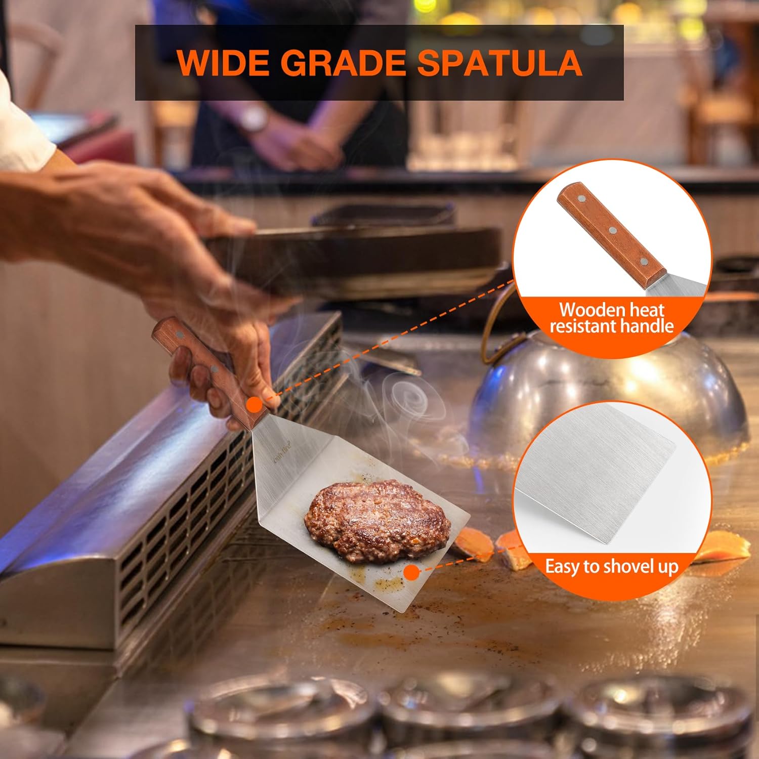 • ☛WIDE APPLICABILITY: No matter a professional chef or a kitchen enthusiasts deserve these griddle tools, The Griddle Accessories Kit is suitable for outdoor grilling, camping or tailgating, suitable in any griddles like hibachi, teppanyaki and cast iron.