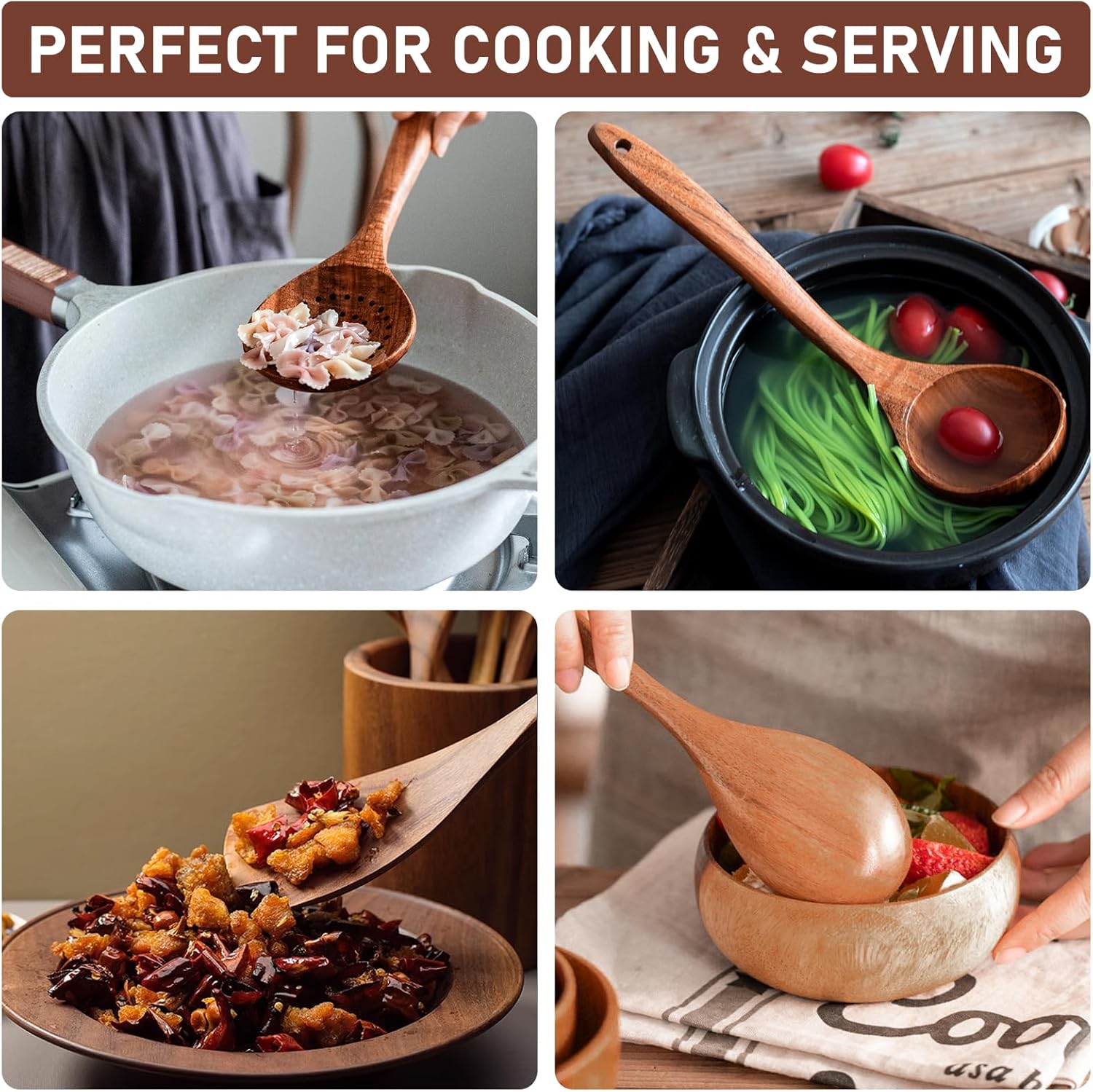 • [Wooden Cooking Tools for Non-stick Cookware]: Embrace the durability of our teak cooking set,and offer superior heat insulation without compromising quality, protecting your hands and expensive non-stick cookware from damage