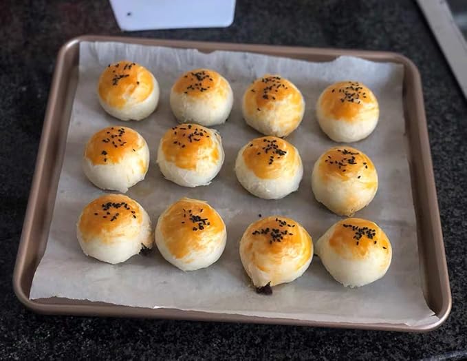• 【EASY TO CLEAN】Cleaning is a breeze - The baking sheets can super easy to clean up. Just rinse under water or run through the dishwasher.