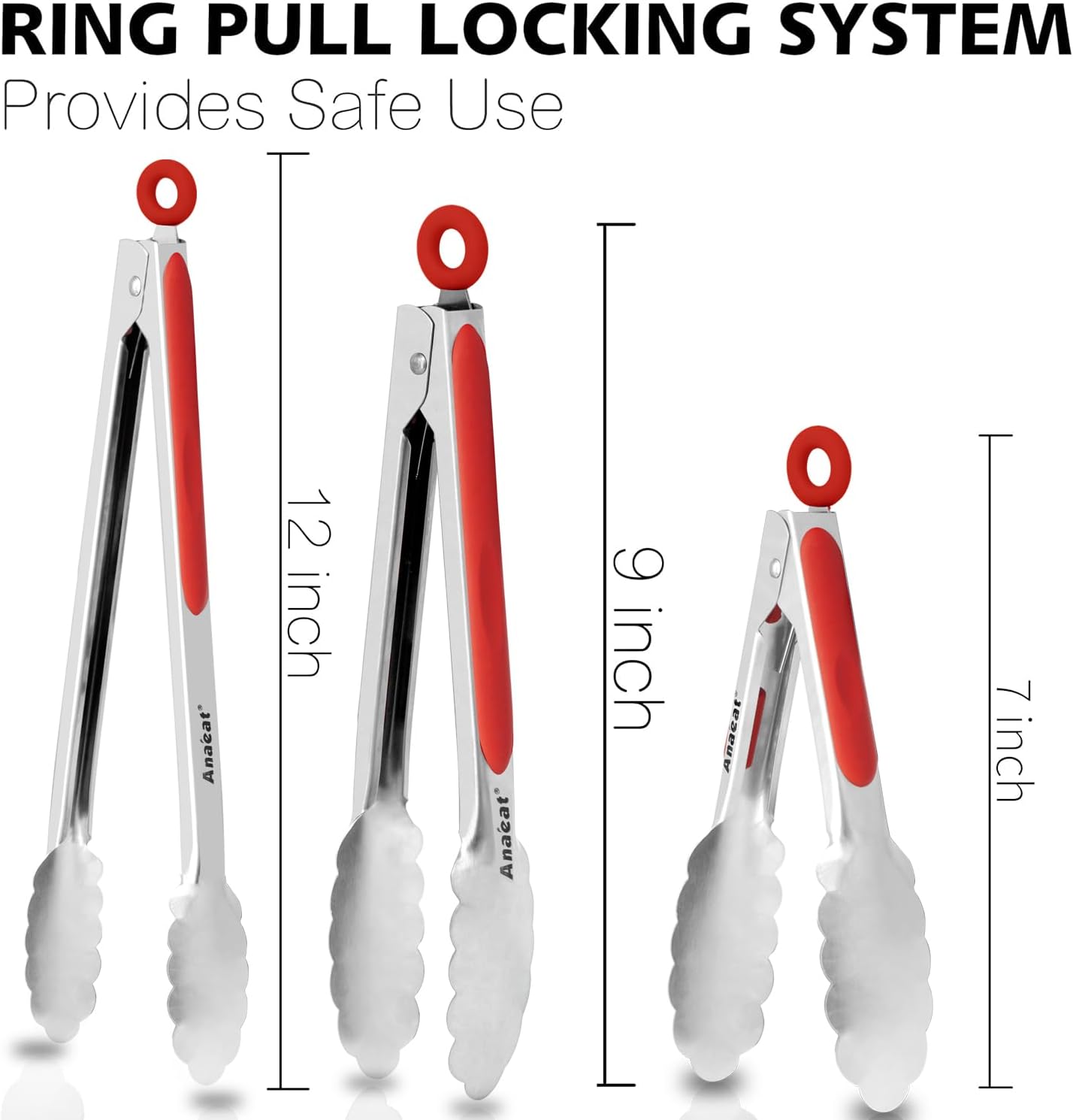 Anaeat Premium Sturdy Barbecue Tongs for Kitchen Grill & BBQ - 7,9,12 Inch Non-Slip Stainless Steel Locking Tongs Heat Resistant for Grilling, Cooking, Turning and Barbecue