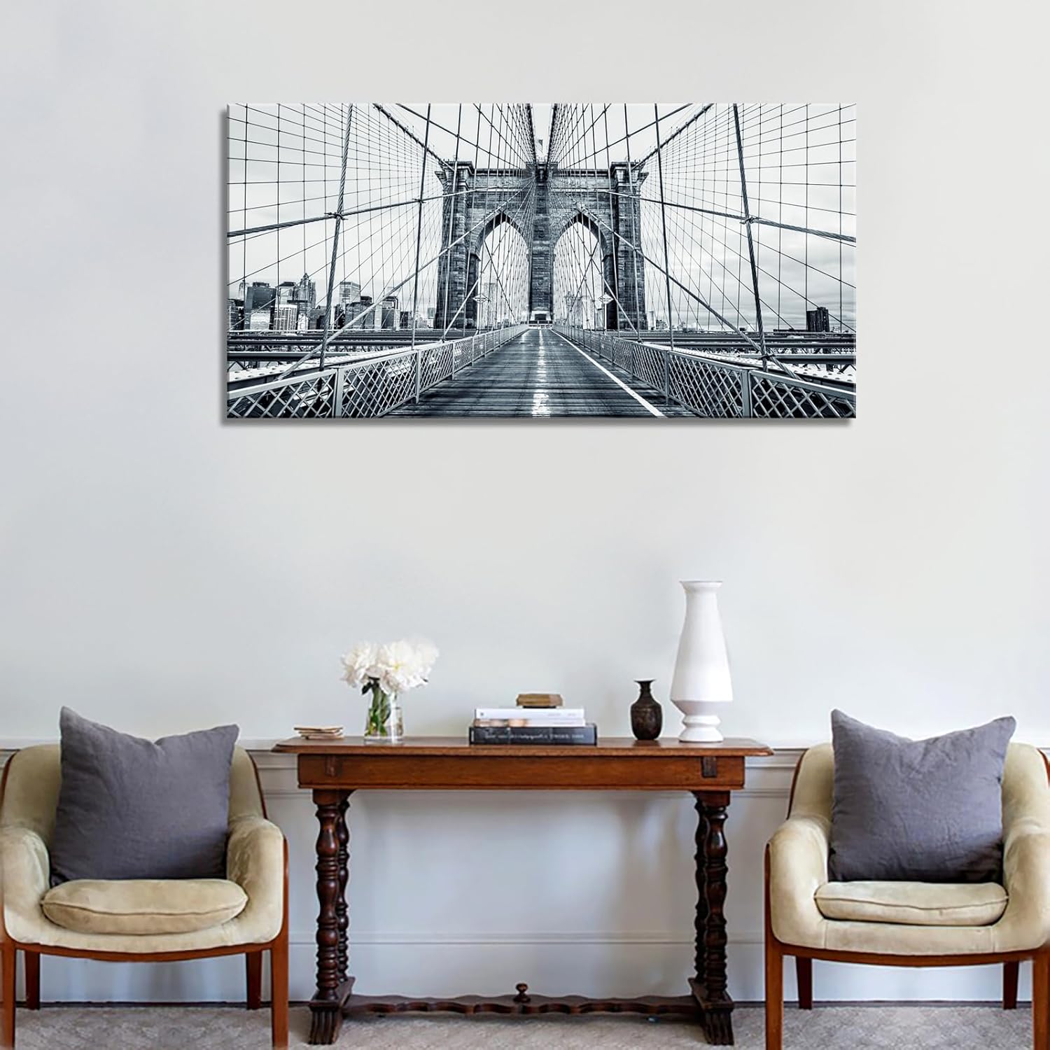 DZL Art Q70775 Black and White New York City Brooklyn Bridge Wall Art Painting Wall Art Canvas Prints Painting Picture Stretched and Framed For Living Room Decor Office Wall Decor Home Decoration