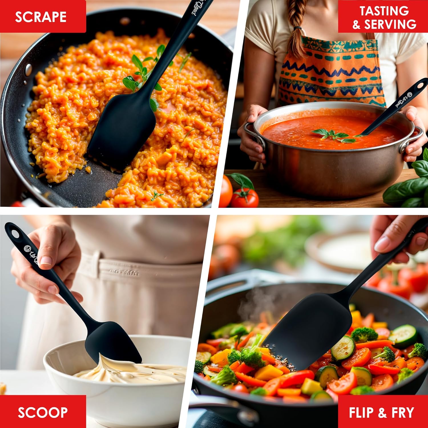 Silicone Spoon Spatula - 600ºF Heat-Resistant Non-Stick Rubber Spoonula | Use as Silicone Kitchen Scraper Utensil - Baking and Cooking Strong Stainless Steel Core | UpGood Kitchen Utensils, (Black)
