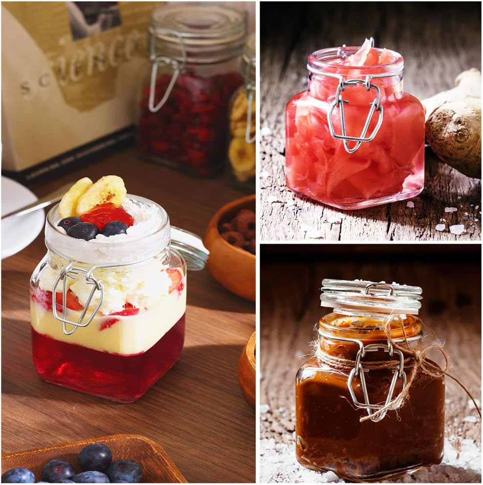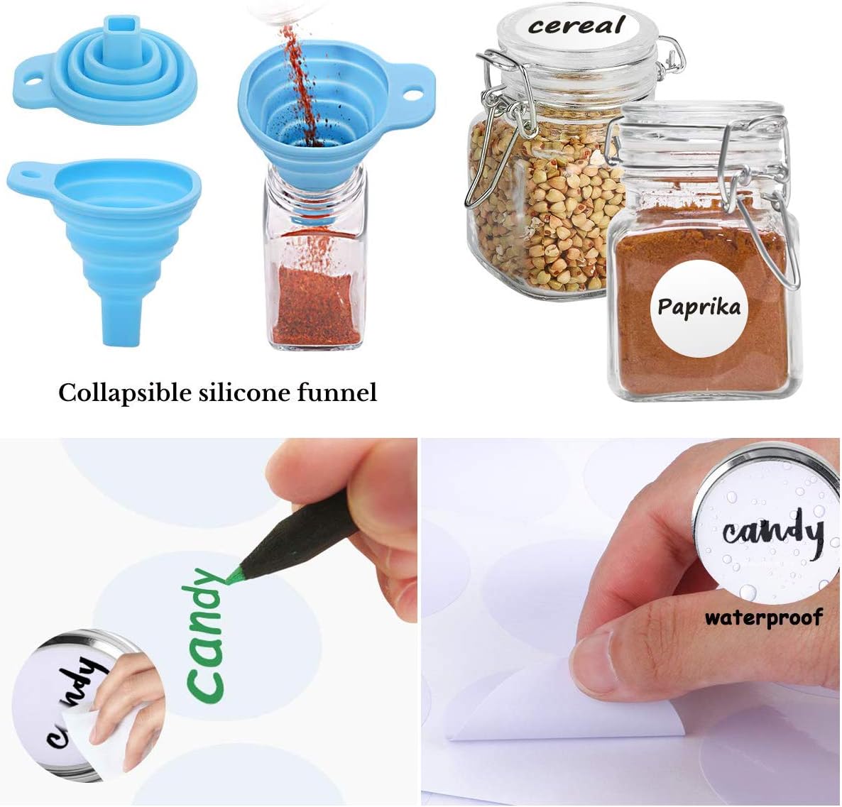 • Great Spice Jars - Clear square glass jars are prefect size to be used as glass spice jars. Airtight Glass mini mason jar storage containers help you adding your personal touch to your homemade spice jar set, Herb jars, seasoning jars, herb storage containers, bath salt jars, flip top jar, condiment jar, kitchen storage jars.