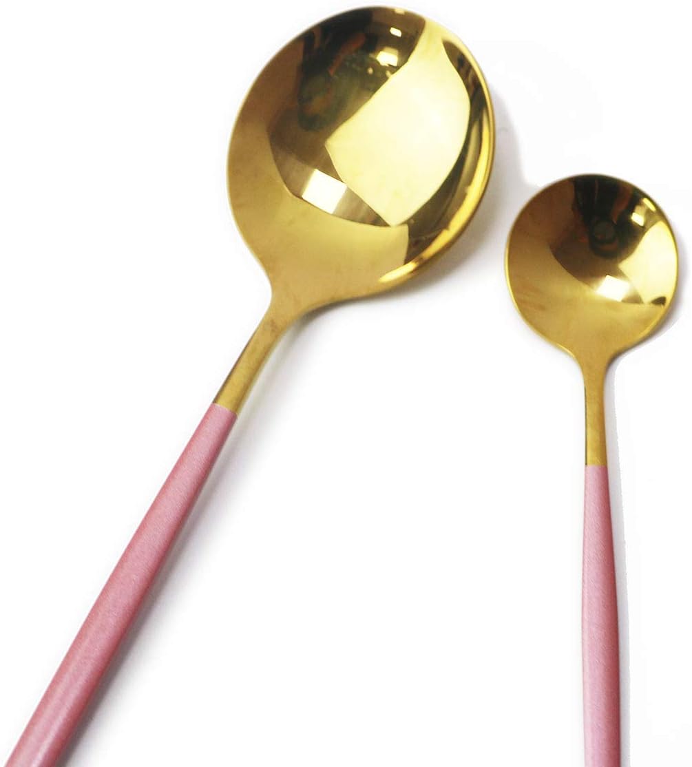 • 【High Quality Utensil Set】 This silverware set is made of 304 (18/8) standard high quality stainless steel,durable and it can keep shiny for long time.Mirror finished surface,smooth edges without rough spots,ergonomic shape, suitable for daily use.Easy to clean, dishwasher safe.