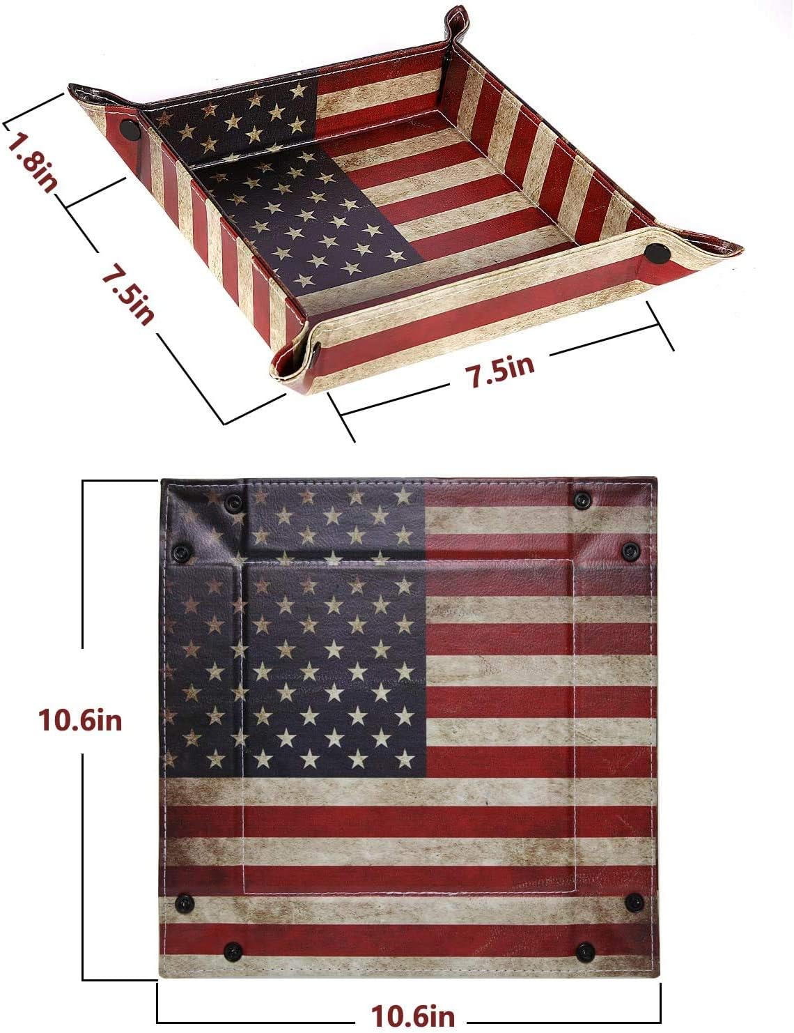 siduater Valet Tray Desktop Storage Organizer, Vegan Leather Catchall Bedside Vanity Tray Nightstand Caddy Holder for Remote Controller, Watch, Keys, Phone, Wallet, Sunglasses, Jewelry - Flag