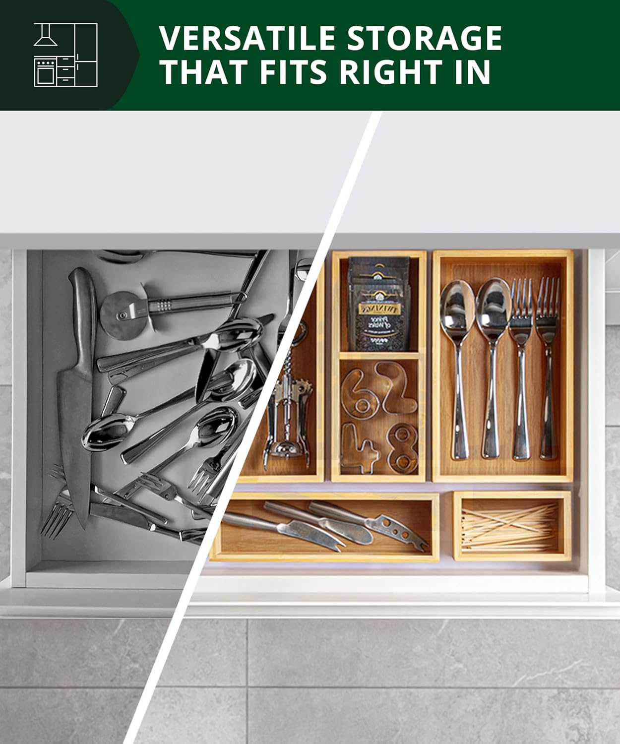 • 5-𝑷𝑰𝑬𝑪𝑬 𝑩𝑨𝑴𝑩𝑶𝑶 𝑺𝑻𝑶𝑹𝑨𝑮𝑬 𝑫𝑹𝑨𝑾𝑬𝑹 𝑶𝑹𝑮𝑨𝑵𝑰𝒁𝑬𝑹 𝑺𝑬𝑻: An ideal deep drawer organizer for everyday use, these storage boxes are both beautiful & functional, making them the perfect compliment to your home decor. RCW delivers quality organizers & storage bins, so choose our bamboo storage box set of 5, perfect for home, kitchen, bathroom, office, drawer, art supplies, and crafts organization. Easy to place into and remove from any drawer, the boxes may also be used for countertop essentials organization