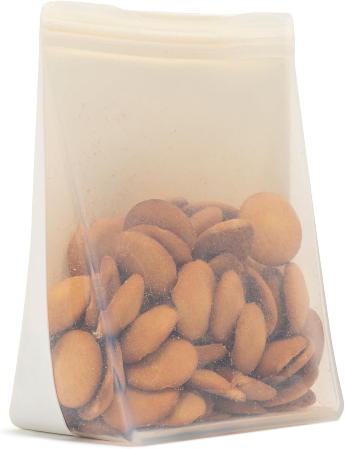 W&P Porter Silicone Reusable Storage Bag, Sandwich (50oz Stand-Up), Cream, Food Storage Container, Microwave and Dishwasher Safe, Easy Cleaning