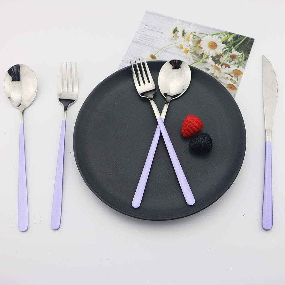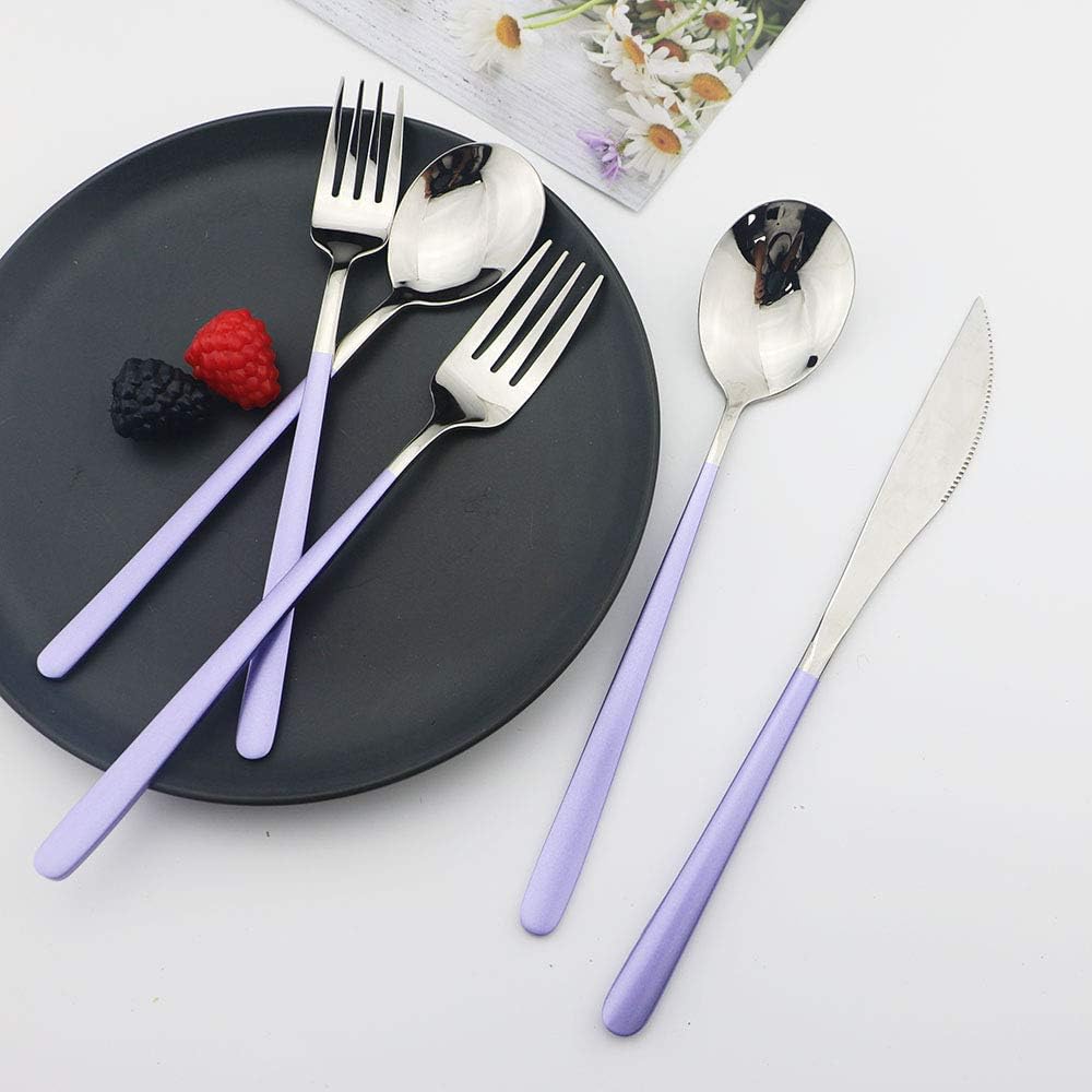 JASHII SUS304 Stainless Steel Flatware Cutlery Set For Home Kitchen Restaurant Hotel, Mirror Polished, 20-Piece Silverware Set for 4, Dishwasher Safe(Purple silver)