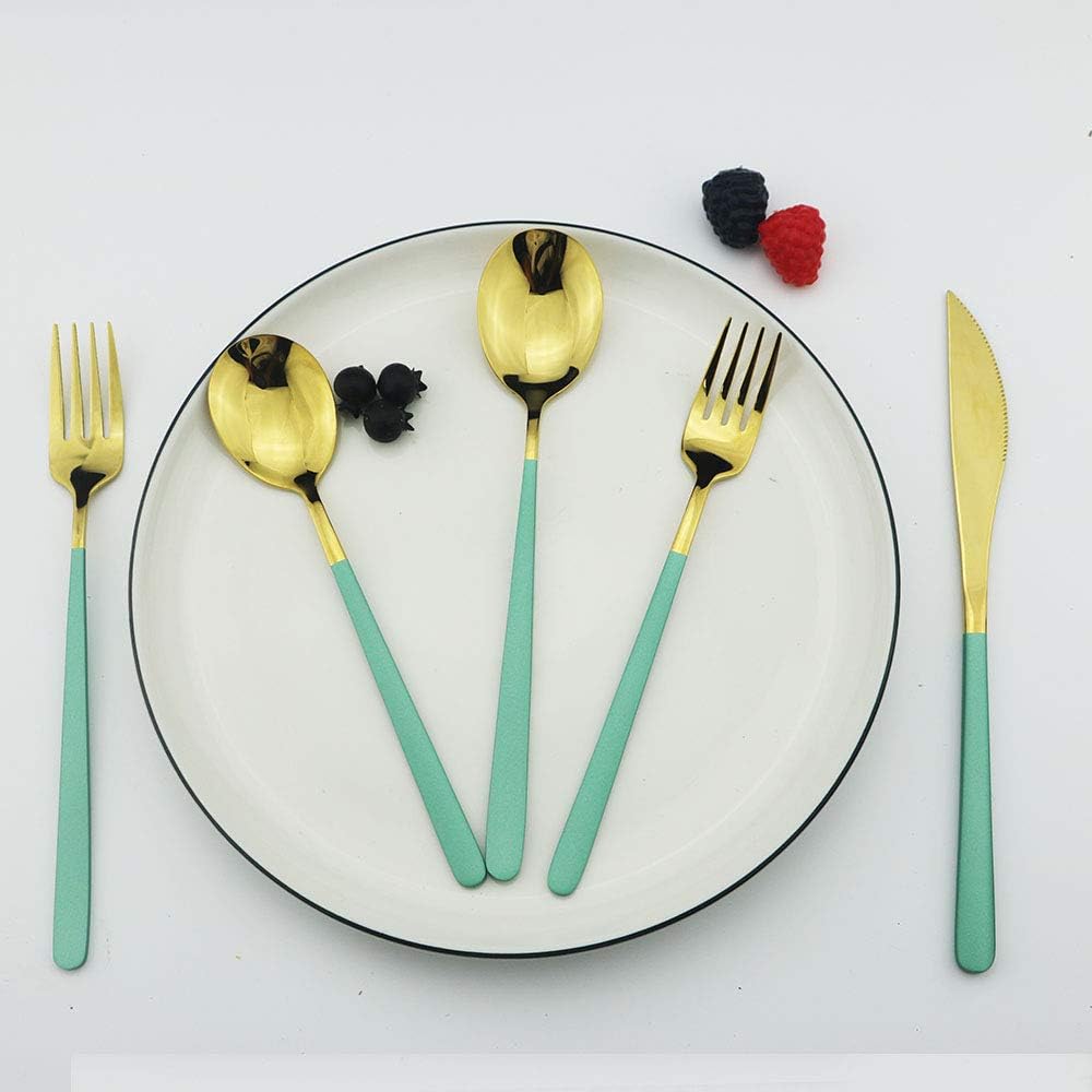 JASHII Flatware Set SUS304 Stainless Steel Silverware Set 20-Piece Cutlery Set, Smooth Surface and Mirror Polish, Fit for Kitchen Hotel Restaurant Tableware Set.(Green gold)