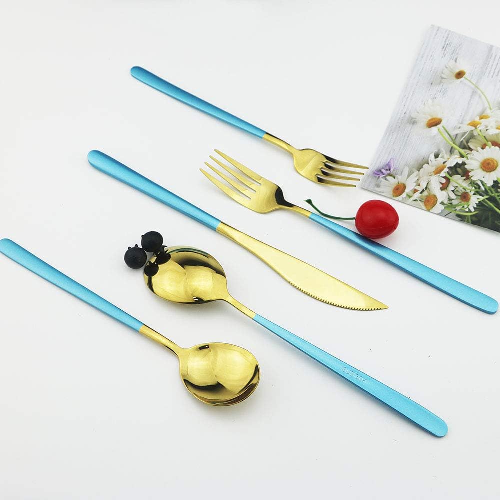 JASHII 20-Piece Silverware Set with Serving Utensils, SUS304 Stainless Steel Flatware Cutlery Set for 4, Eating Utensil Tableware Sets, Mirror Finish(Blue gold)