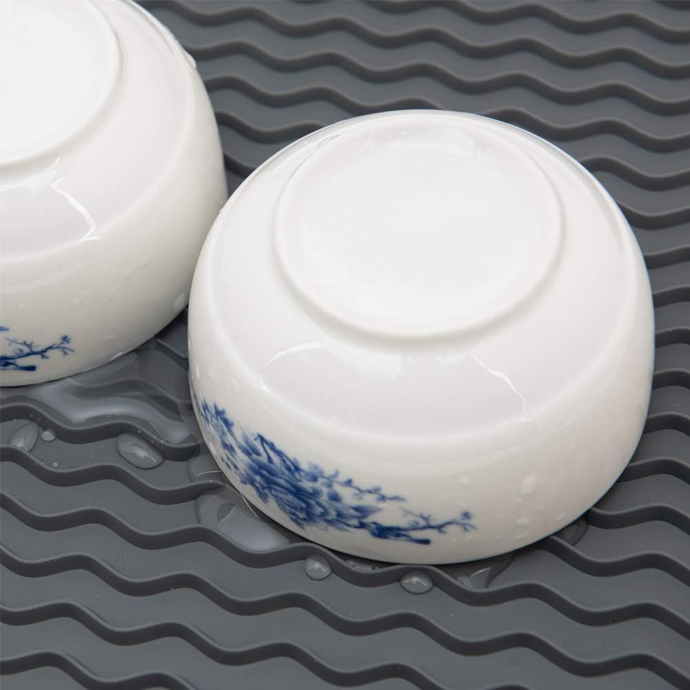 ZLR 2 Pcs Silicone Dish Drying Mats for Kitchen Counter, Eco-Friendly Fast Dry Dish Mat, Easy Clean Multi Usage Drying Matt, Heat Resistant Trivet, 12" x 16" Large, Gray
