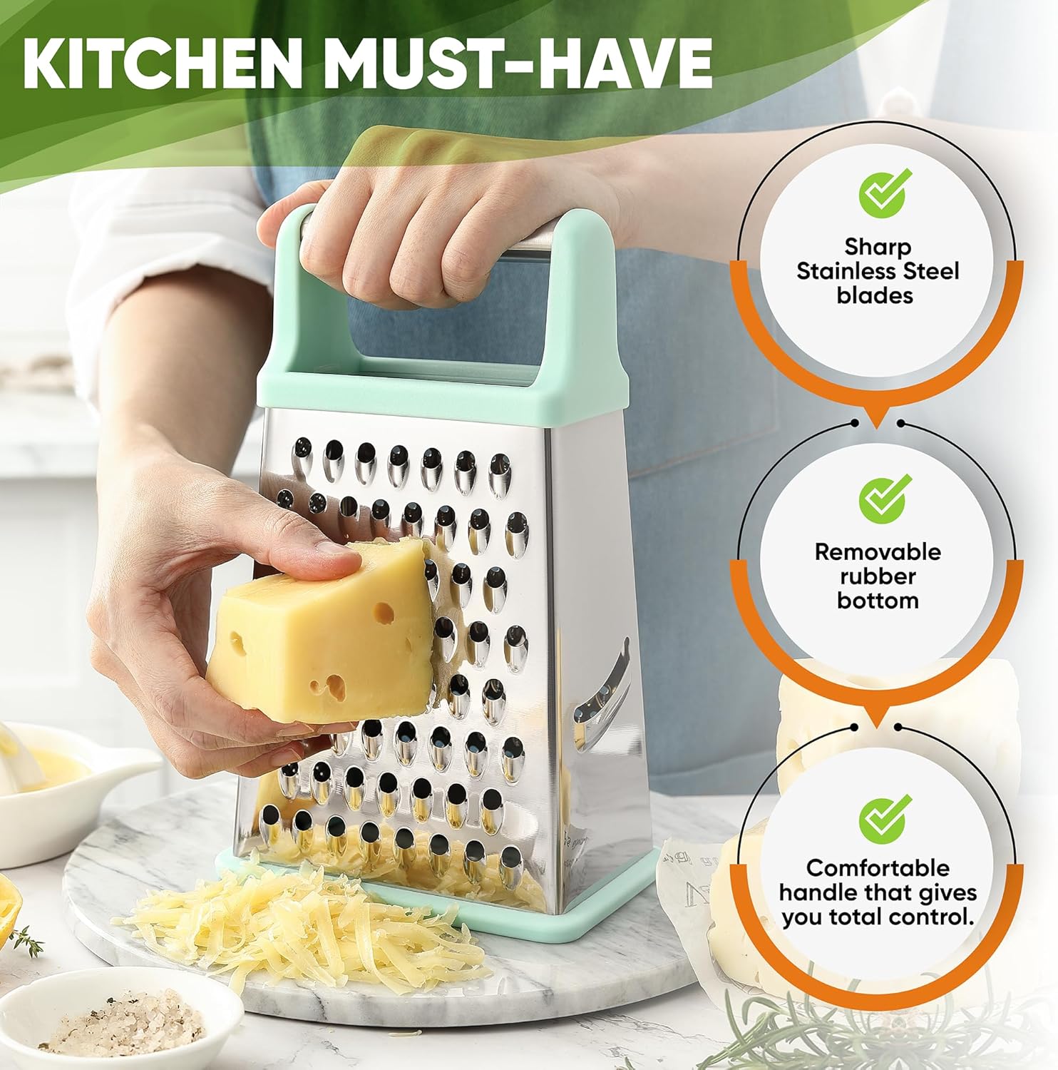 Spring Chef Professional Cheese Grater - Stainless Steel Box Grater for Kitchen, XL Size - Perfect 4 Sided Shredder for Parmesan Cheese, Vegetables, Ginger - Dishwasher Safe - Mint