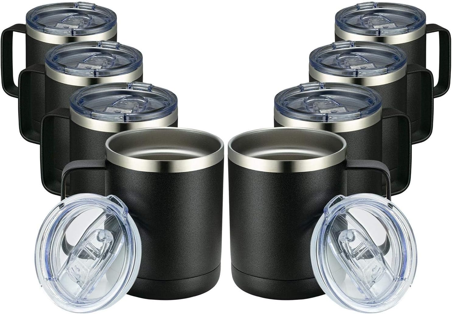 MEWAY 12oz Coffee Mug With Handle 8 Pack Bulk,Stainless Steel Insulated Travel Tumblers With Sliding Lid,Double Wall Vacuum Camping Cup for Hot & Cold Drinks Tea (Black, 8)
