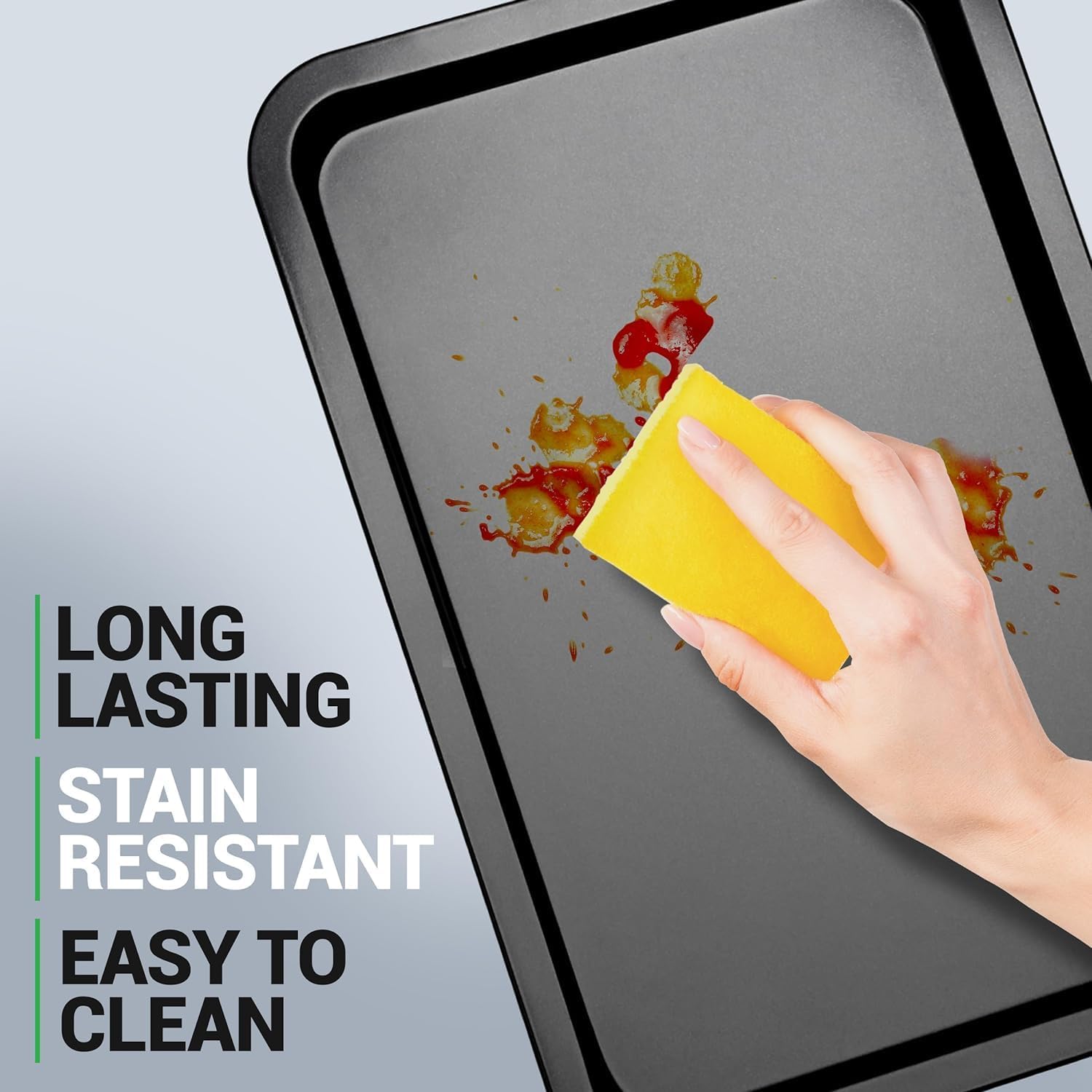 • EASY TO USE - Each sheet is designed with extra-wide, easy to hold handles that offer an outstanding grip when transferring from oven to surface. After each use, wash with dishwashing soap and warm water or pop them into a dishwasher for fast and easy cleaning. Store in a cool dry place for long-term endurance.