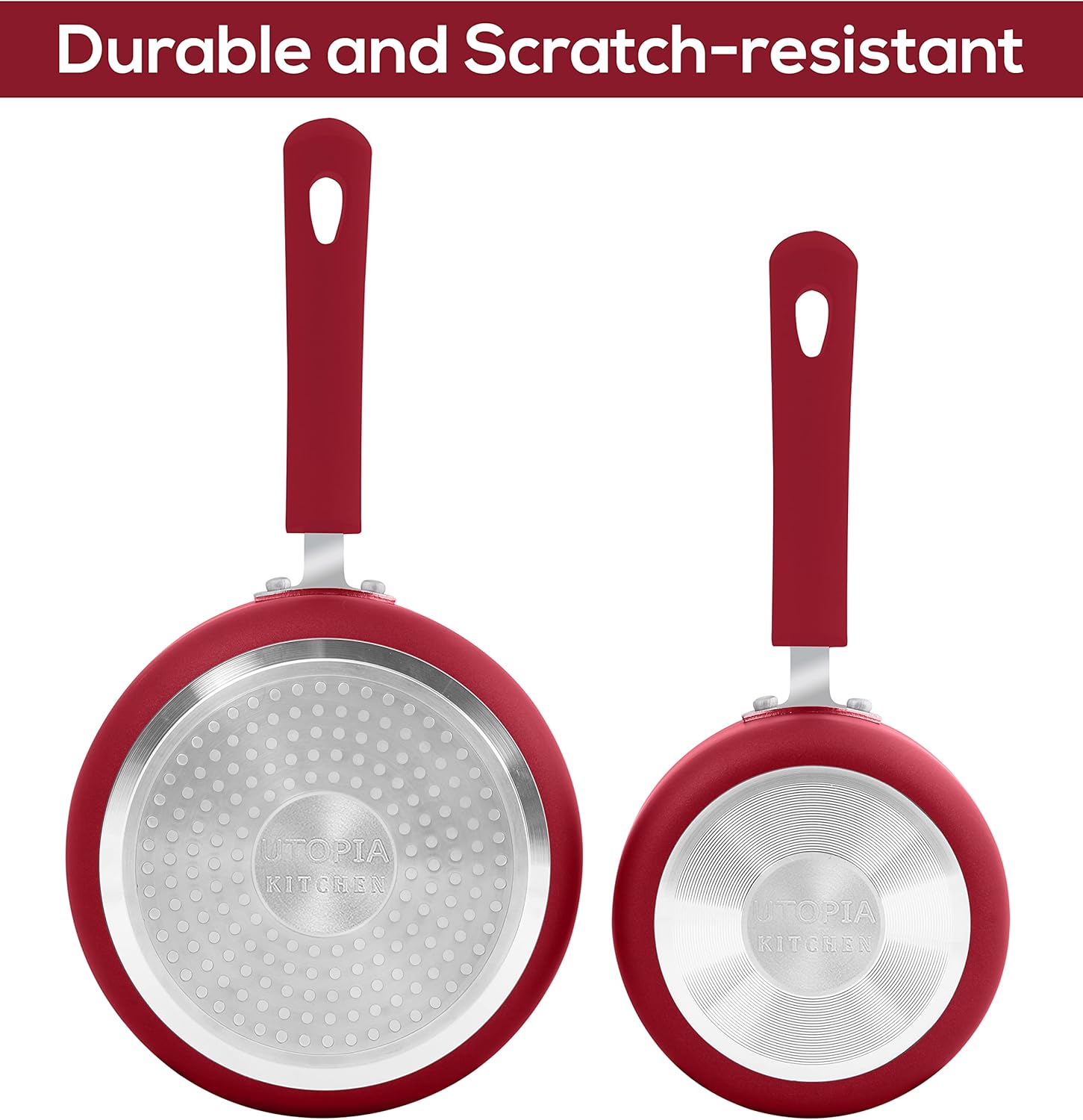 Utopia Kitchen Nonstick Stock Pot Saucepan Set with Lids, 1 Quart and 2 Quarts Multipurpose Stock Pots Set for Home, Kitchen or Restaurant, Red & Black