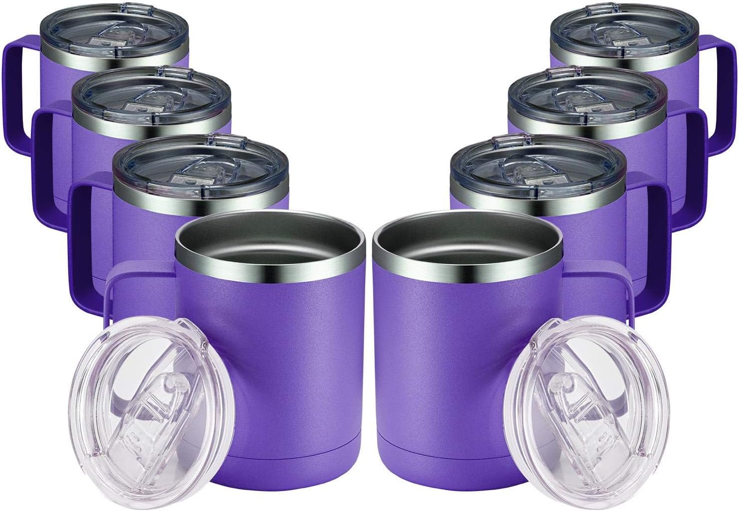 MEWAY 12oz Coffee Mug With Handle 8 Pack Bulk,Stainless Steel Insulated Travel Tumblers With Sliding Lid,Double Wall Vacuum Camping Cup for Hot & Cold Drinks Tea (Purple,Set of 8)