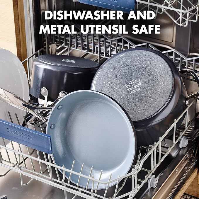 • CUTTING-EDGE CERAMIC NONSTICK: Infused with diamonds, GreenPan's metal utensil safe ceramic nonstick offers remarkable durability, balanced heating, and effortless cleanup.