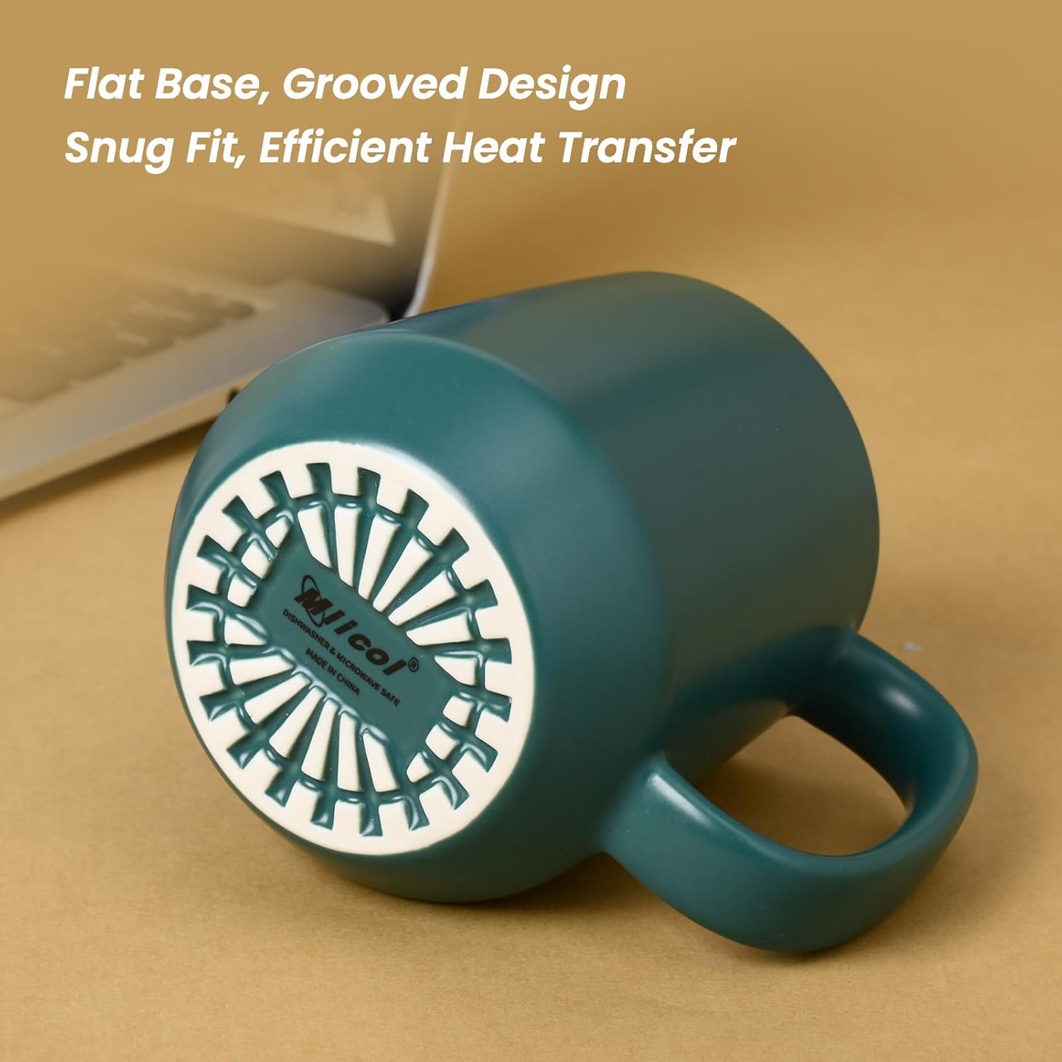 • Unique Insulation Design: Enjoy any cold or hot beverage with this mug. The ceramic's round bottom features a grooved design that minimizes heat loss. Placed on a warming base, it maintains a stable temperature for a long time, allowing you to savor your hot drinks with peace of mind