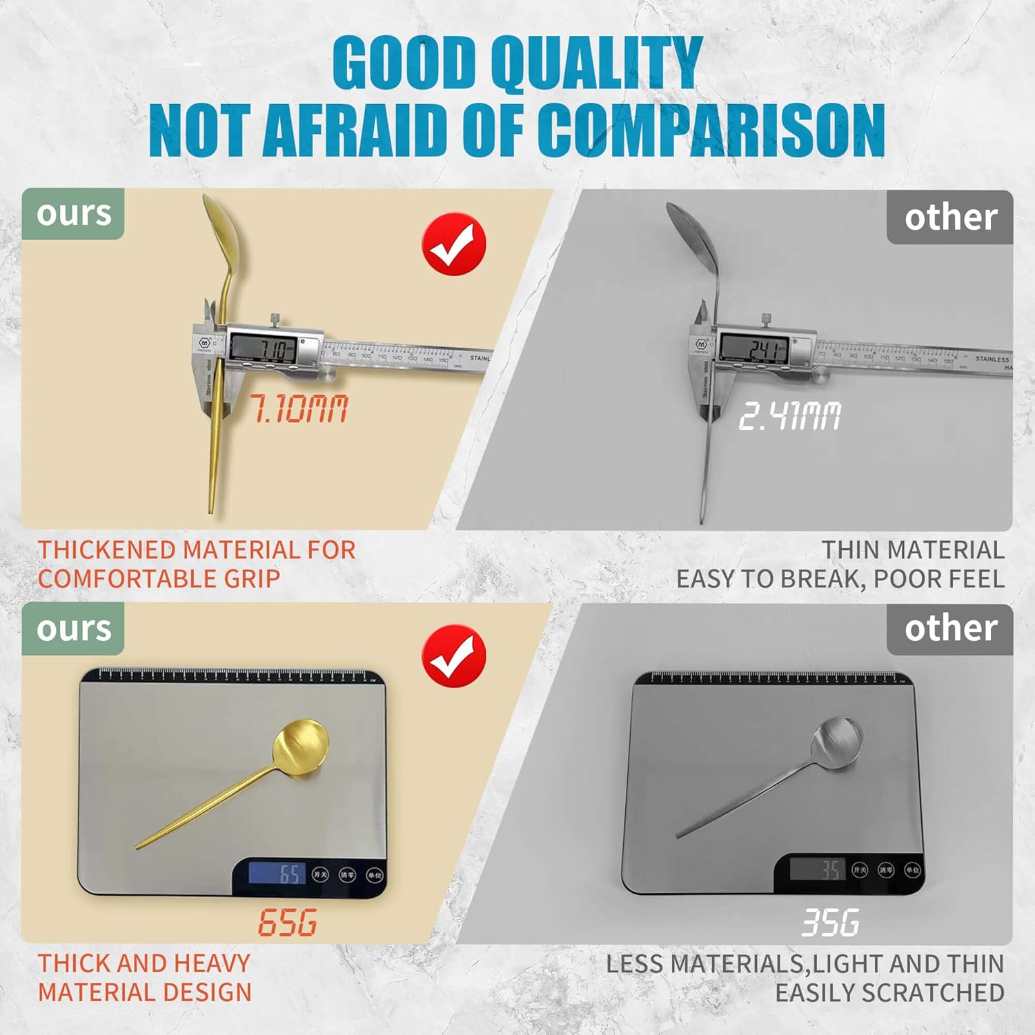 • DURABLE AND SAFE : Crafted from premium stainless steel. Durable and healthy for everyday use. The heavy-duty solid handle is not easy to deform, which is easy to compare with another cheap cutlery set