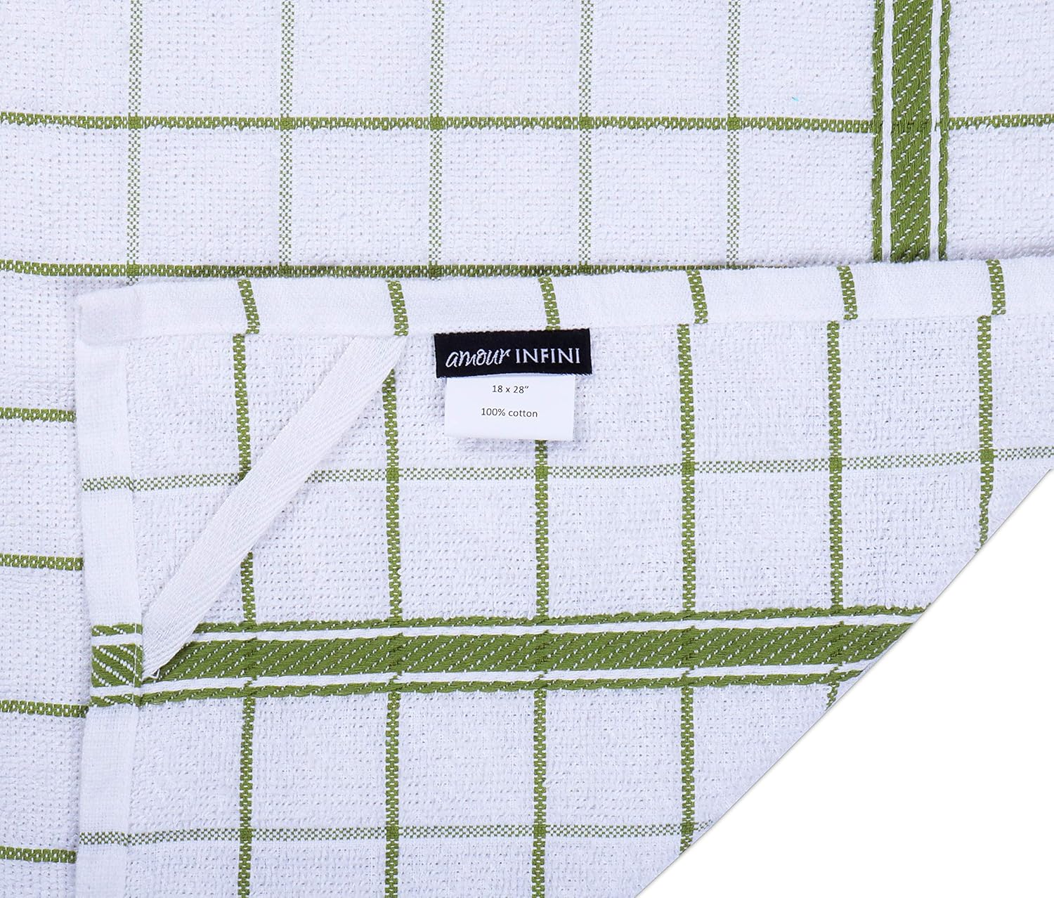 AMOUR INFINI Terry Cotton Kitchen Towels 4-Pack - Large 18 x 28 Inch, Absorbent & Soft Dish Towel with Hanging Loop, Washable Ideal for Cleaning, Drying (Green)