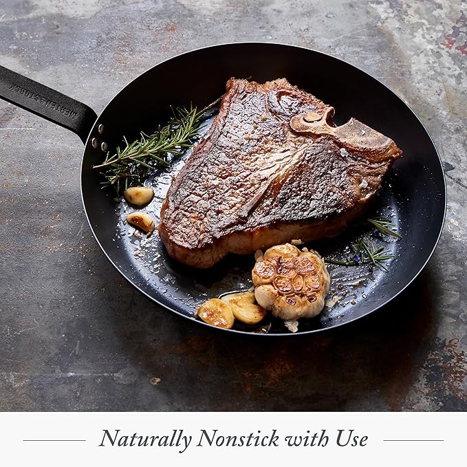 • TRUSTED CARBON STEEL ESSENTIAL: Lightweight, pre-seasoned carbon steel pan with excellent heat control, natural nonstick performance, oven- and induction-safe, and ready to cook right out of the box.