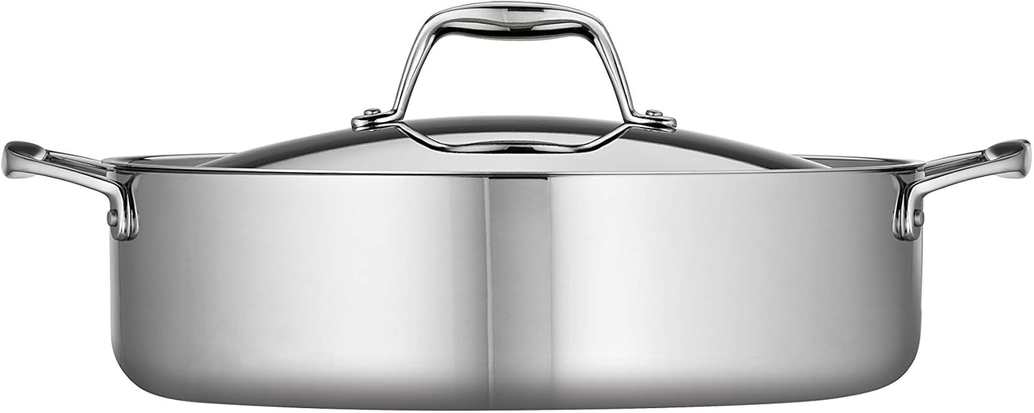 Tramontina Signature Tri-Ply Clad Stainless Steel 6-Quart Braiser Pan with Lid, Induction-Ready, Dishwasher-Safe, NSF-Certified, Made in Brazil