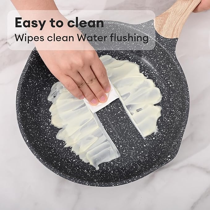 • Nonstick & Health: JEETEE nonstick frying pans with granite stone coating, which is PFOA free, safe & healthy. Require less oil or butter for cooking and minimal scrubbing for a spotless clean, giving you a healthier and more enjoyable at-home cooking experience