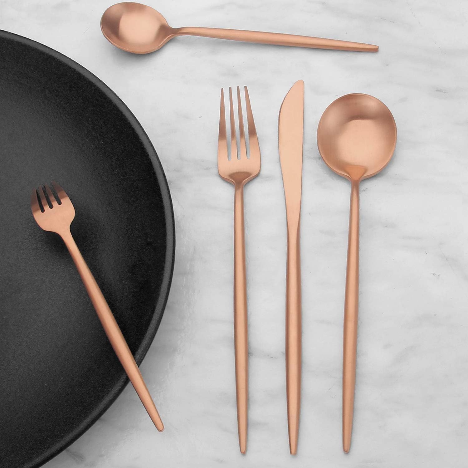 Matte Rose Gold Silverware Set, Stainless Steel Satin Finish Copper Flatware Cutlery Set for 4, 20-Piece Spoons and Forks Kitchen Utensil Set, Dishwasher Safe (Matte Rose Gold, 20 P)