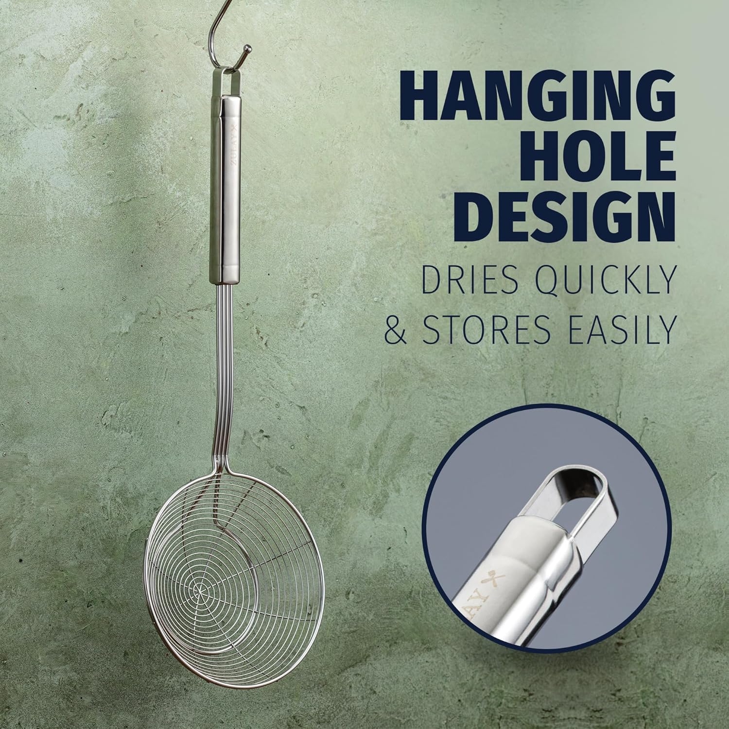 • EASY TO CLEAN & STORE: Dishwasher safe and effortless to maintain! simply toss it in the dishwasher or wash with warm, soapy water, and it’s ready for your next round of frying or straining! Designed with a built-in hanging hole for quick, space-saving storage in your kitchen.