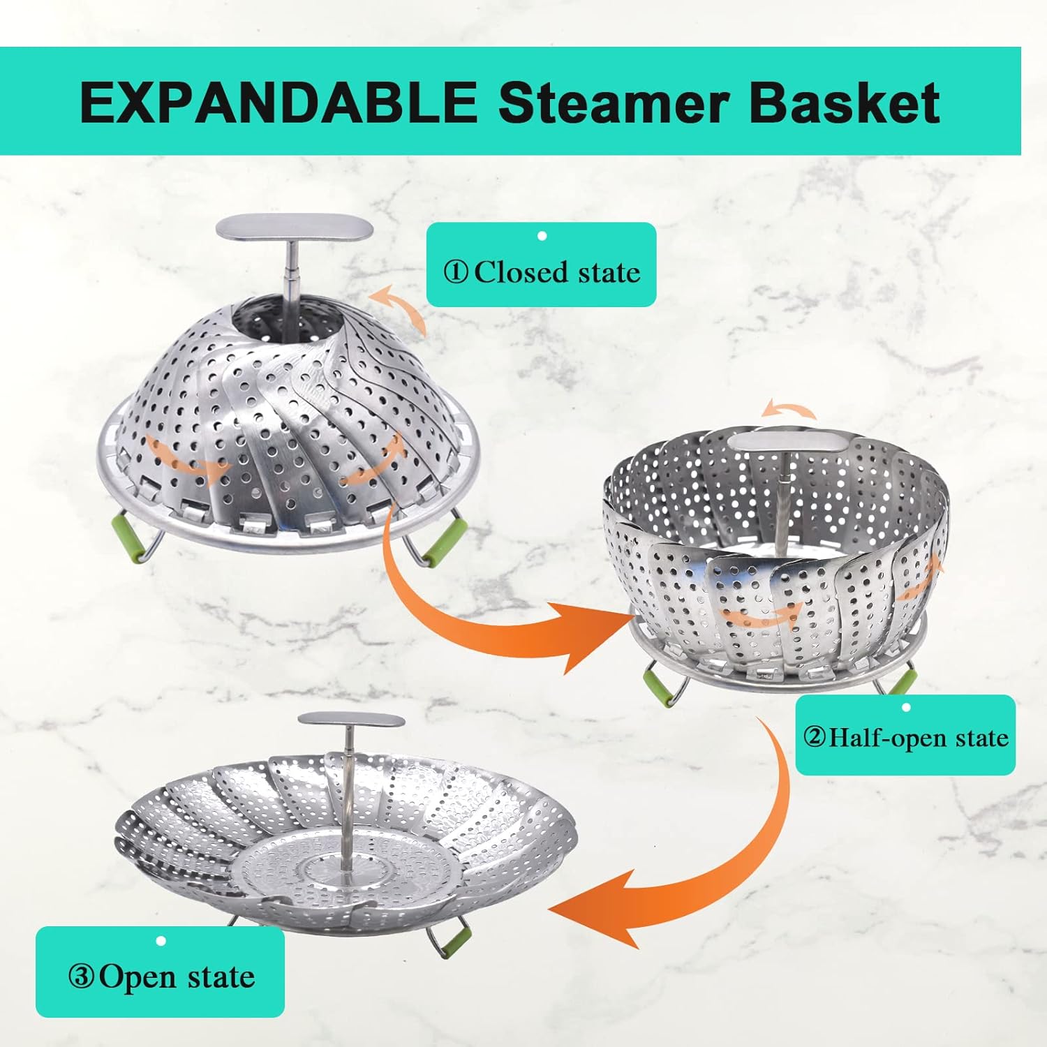 Steamer Basket Stainless Steel Veggie Steamer Basket for Cooking Folding Food Steamer Insert Steaming Basket Adjustable Expandable to fit Various Size Pot (5.1" to 9")