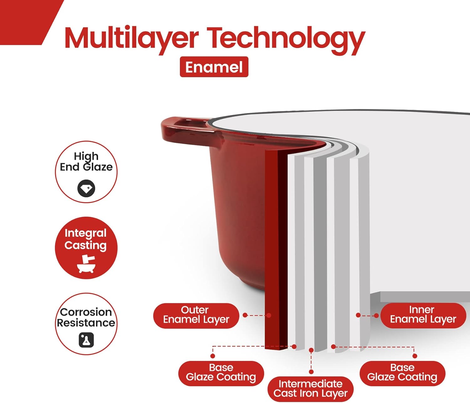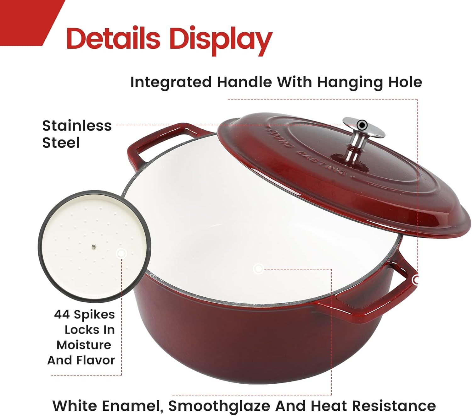 • Versatile usage: No need to season this large Dutch Oven, which features a gorgeous, enamel. Grill, sear and fry your favorite dishes at the highest of temperatures and know that this pot can handle anything you cook in it