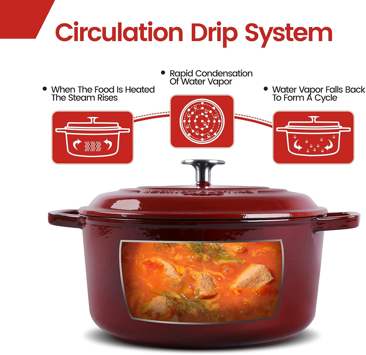 Enameled Cast Iron Dutch Oven Pot With Lid, Dutch Oven for Sourdough Bread Baking Round Pot Dule Handle, 6 Quart, Wine Red