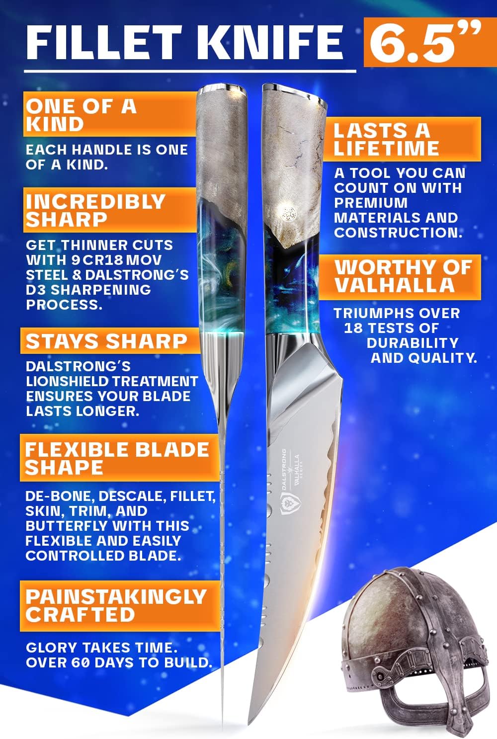 Dalstrong Fillet Knife - 6.5 inch - Valhalla Series - 9CR18MOV HC Steel - Celestial Resin & Wood Handle Gift Kitchen Knife - Meat Cutting, Carving, Bone, Deboning, Boning - Leather Sheath