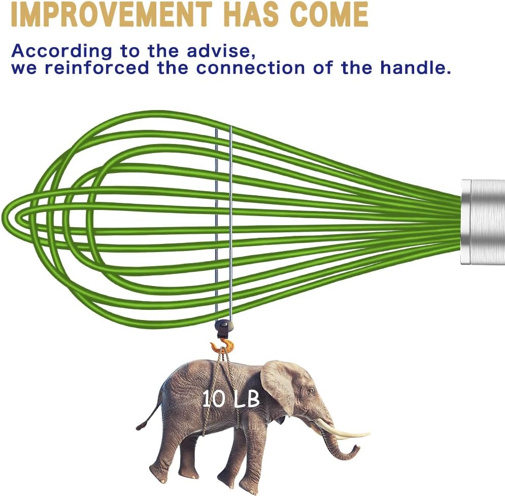 Silicone Whisk,Professional Whisks For Cooking Non Scratch,Stainless Steel & Silicone Wisk,Plastic Rubber Whisk Tool For Nonstick Cookware Pans,Silicon Wisks Set of 3,Green.