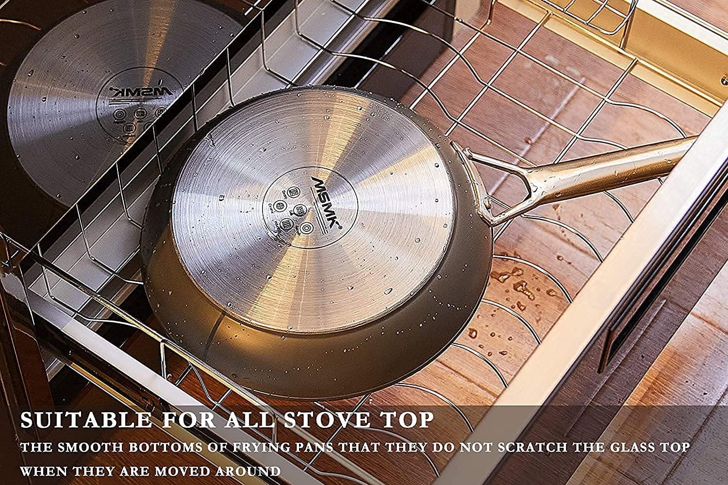 • Easy to Clean Design: MSMK cookware limestone nonstick of the frying pan makes scraping off burnt-on food much easier. MSMK non-stick pans can usually be cleaned just by wiping them using a paper towel, you are saving a lot of water