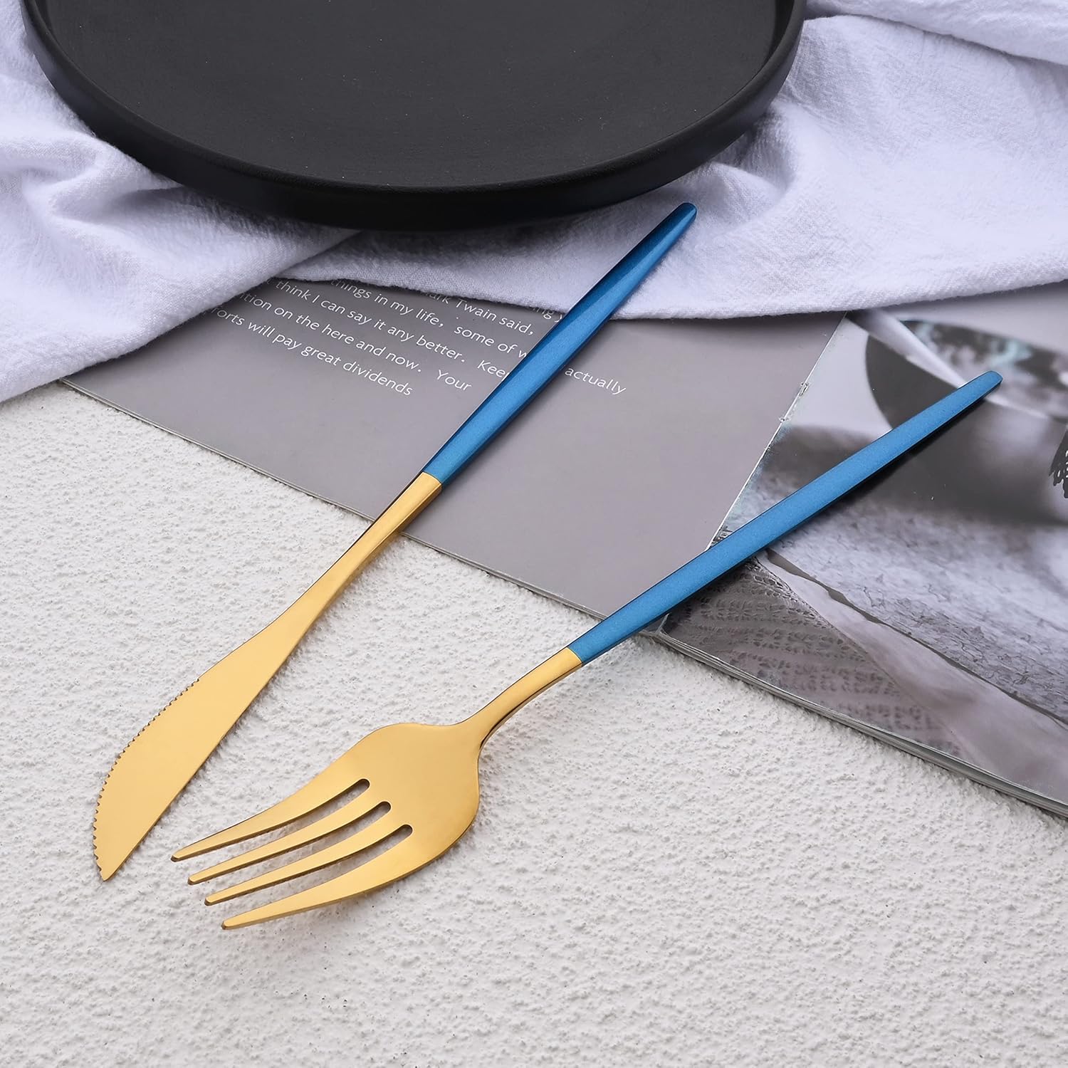 Silverware Set – 20 Piece Family Dinnerware Set – Flatware Set Service For 4 – Blue Gold Tableware Sets – Cutlery Great For Family Gatherings & Daily Use – Spoons, Knives, Forks