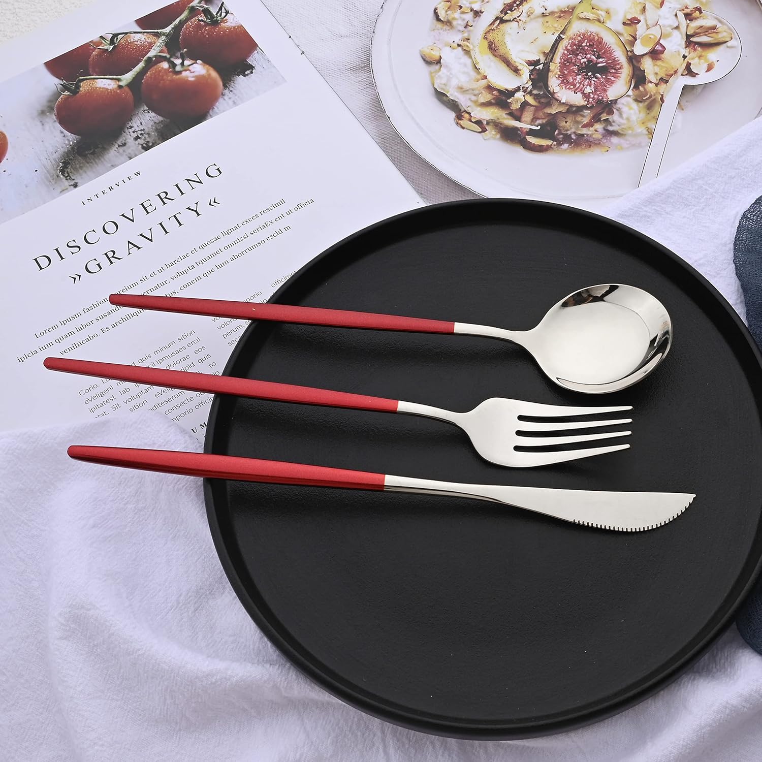 Silverware Set – 20 Piece Family Dinnerware Set – Flatware Set Service For 4 – Red Silver Tableware Sets – Cutlery Great For Family Gatherings & Daily Use – Spoons, Knives, Forks