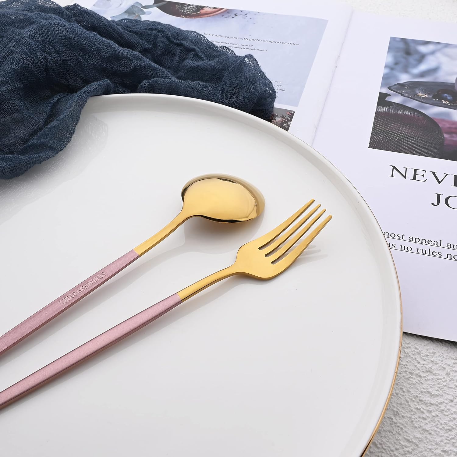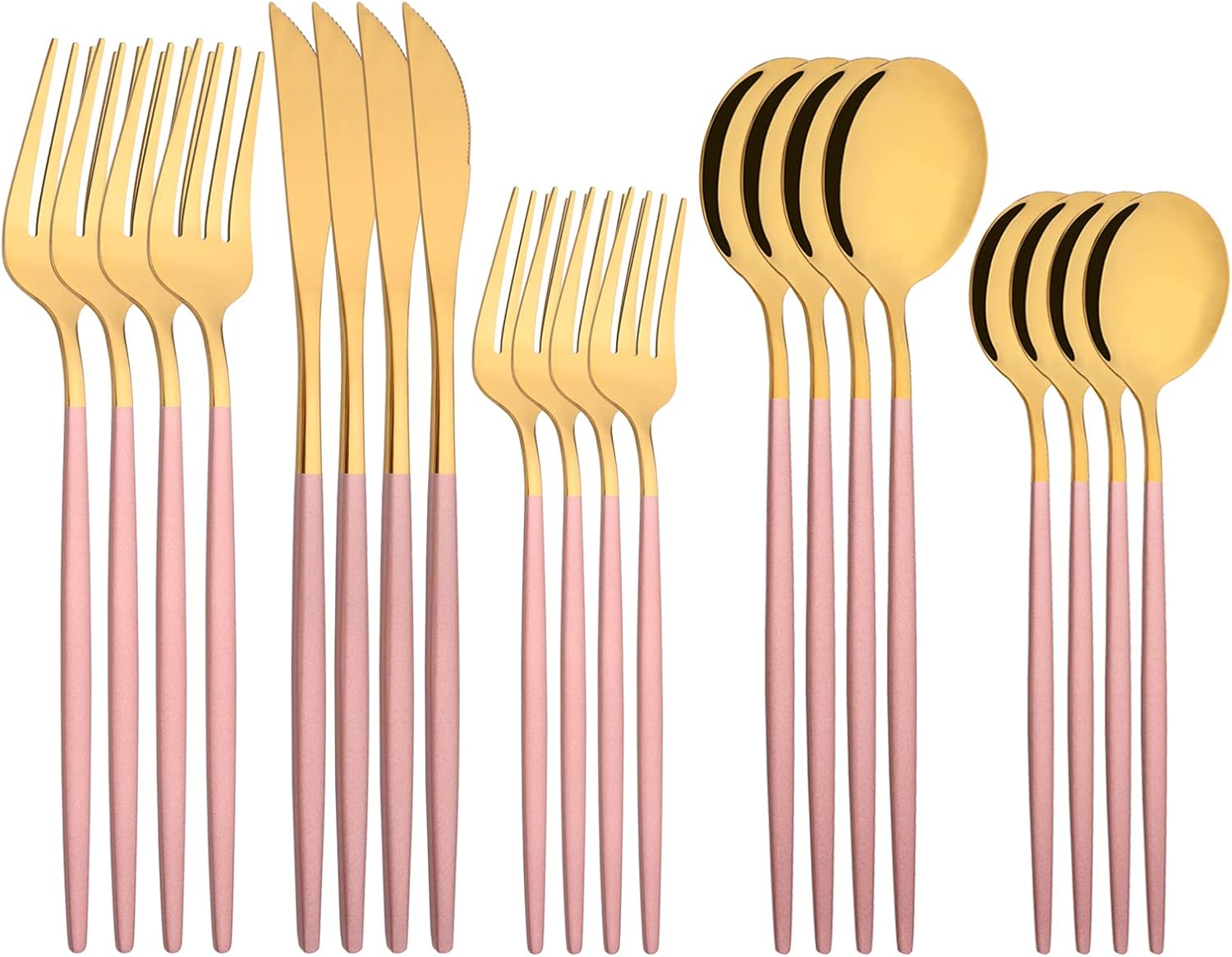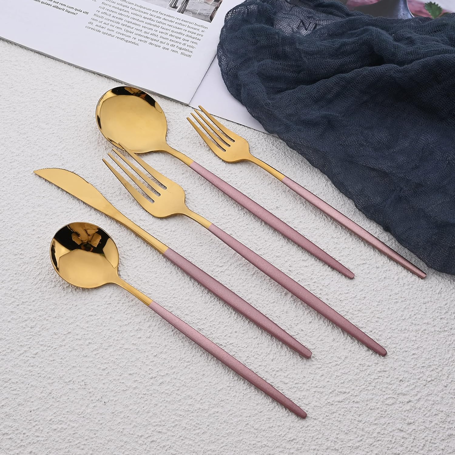 Silverware Set – 20 Piece Family Dinnerware Set – Flatware Set Service For 4 – Pink Gold Tableware Sets – Cutlery Great For Family Gatherings & Daily Use – Spoons, Knives, Forks