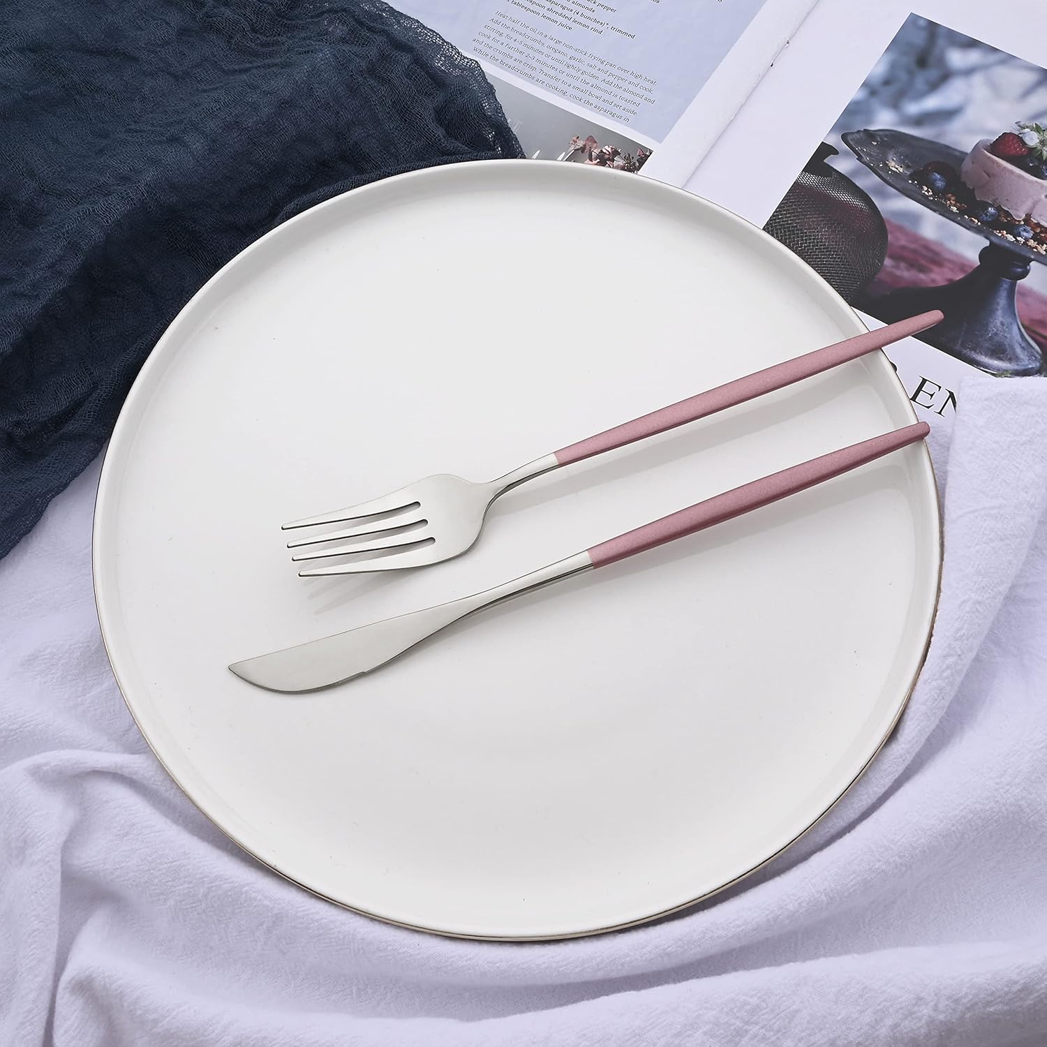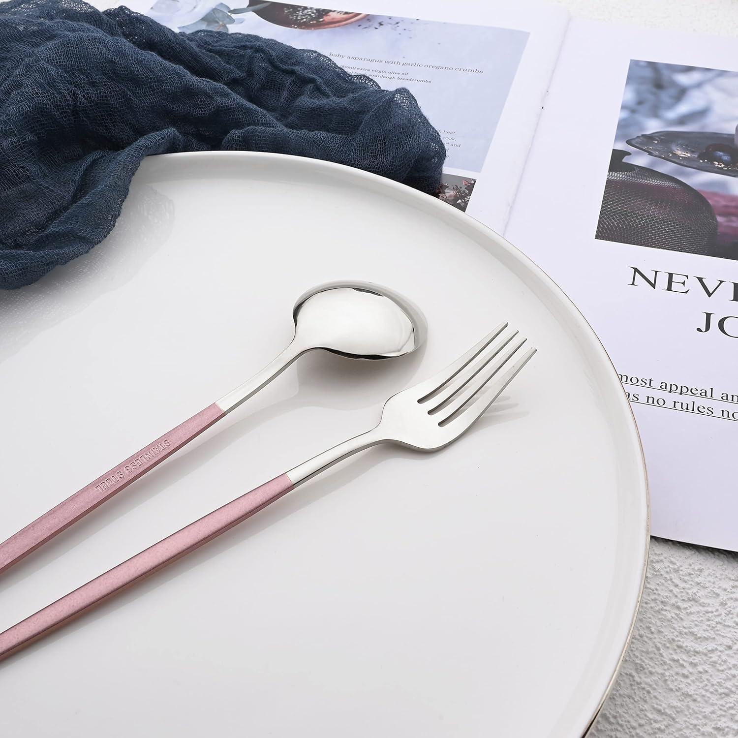 Silverware Set – 20 Piece Family Dinnerware Set – Flatware Set Service For 4 – Pink Silver Tableware Sets – Cutlery Great For Family Gatherings & Daily Use – Spoons, Knives, Forks