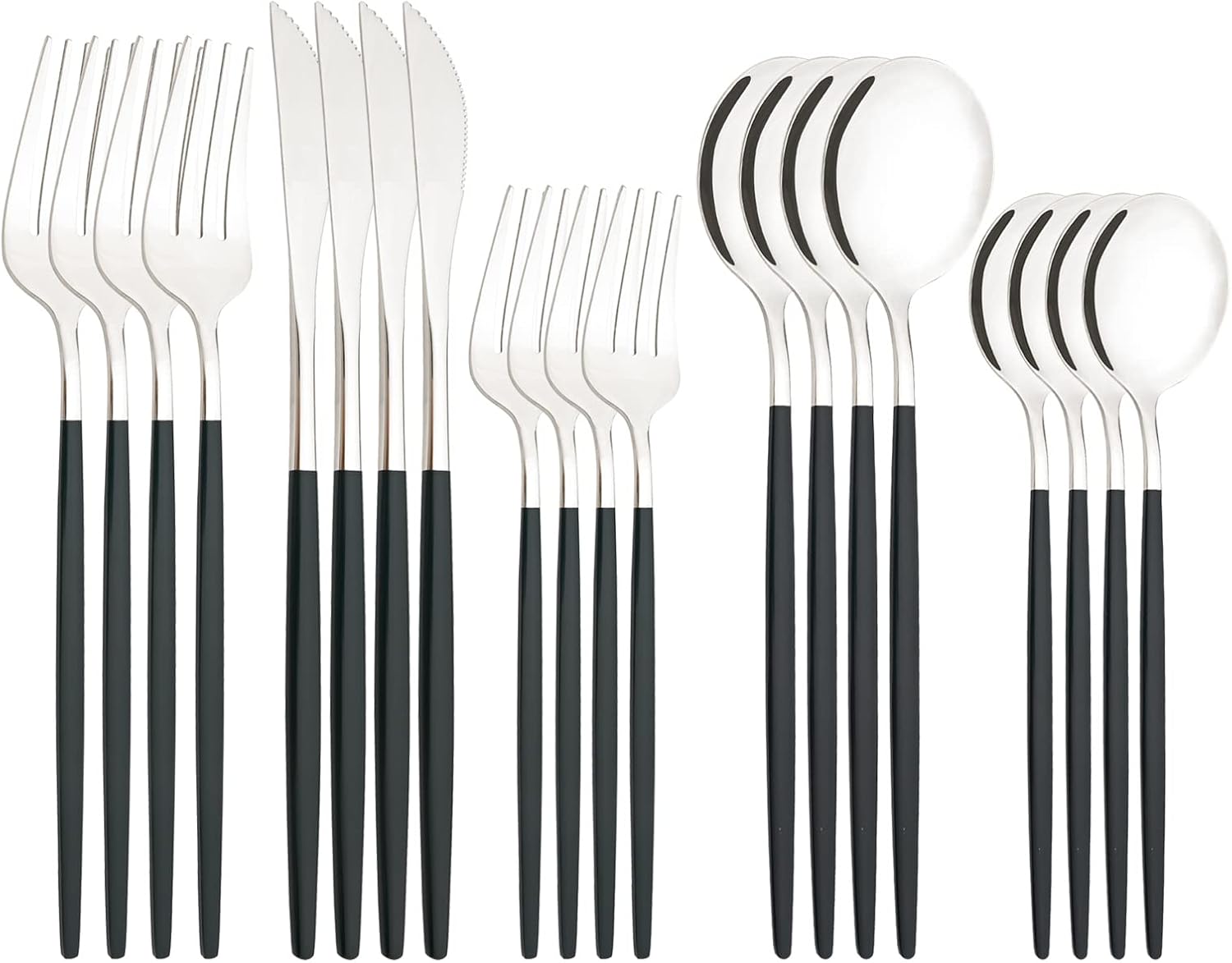 • PERFECT FOR LARGE GATHERINGS: 20-piece set, service for 4, includes 4 each of: dinner fork, dessert fork, dinner knife, dinner spoon, and dessert spoon.