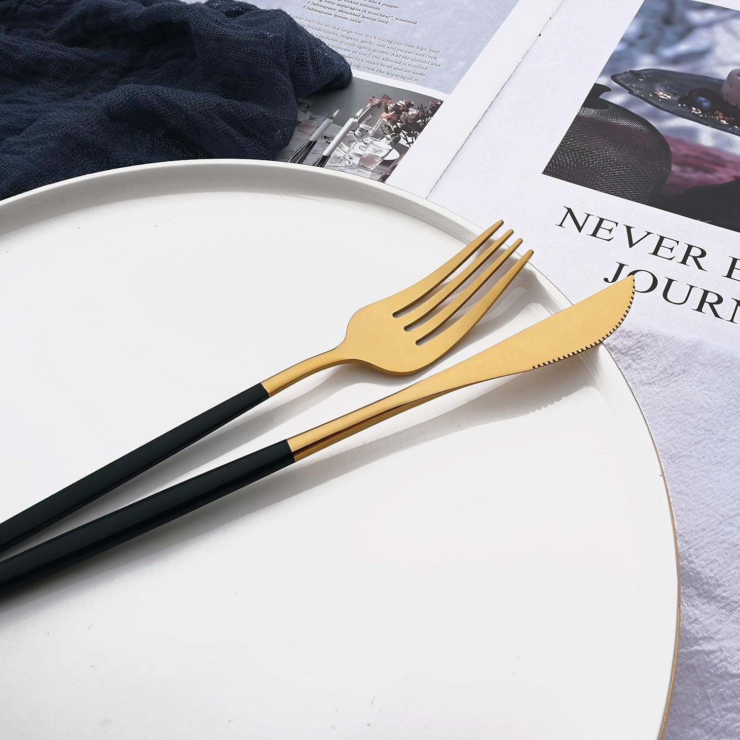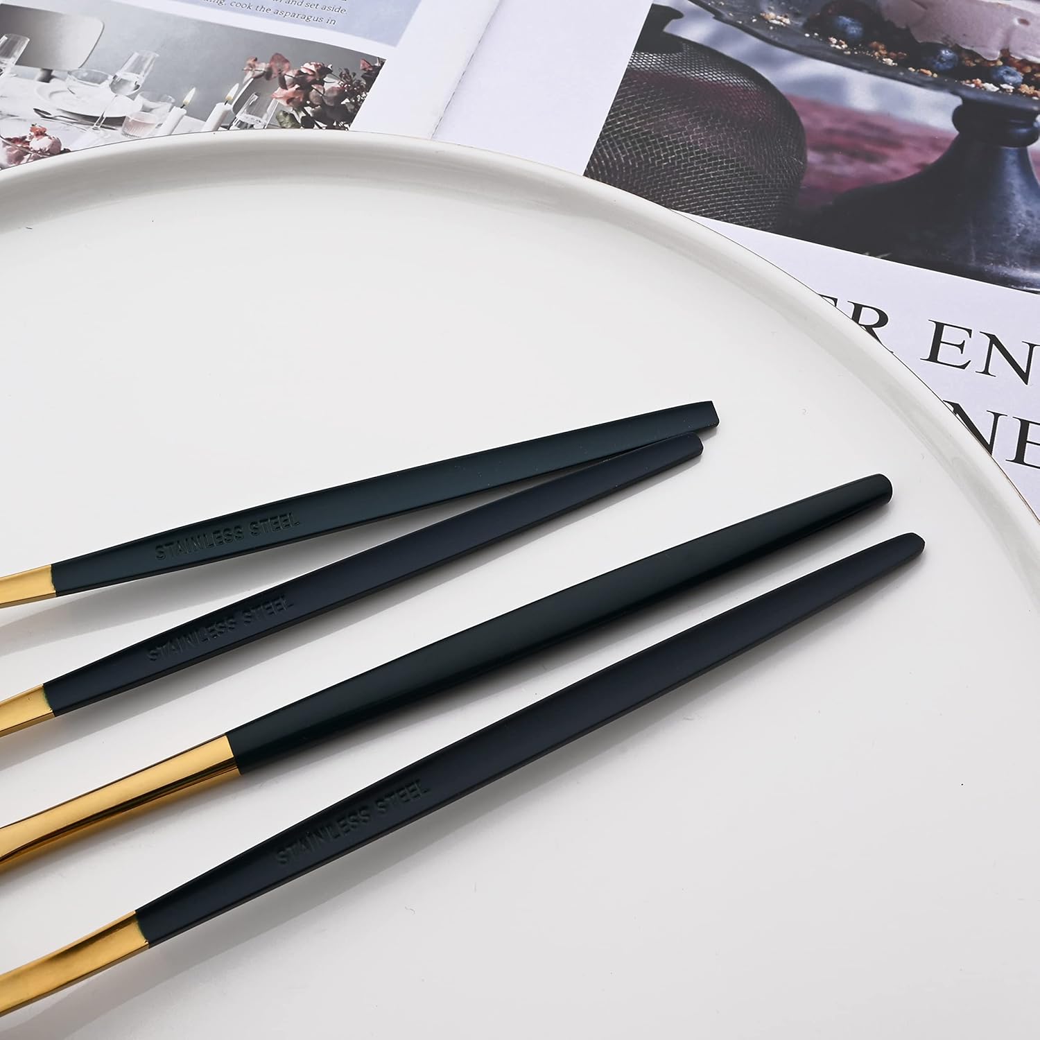 Silverware Set – 20 Piece Family Dinnerware Set – Flatware Set Service For 4 – Green Gold Tableware Sets – Cutlery Great For Family Gatherings & Daily Use – Spoons, Knives, Forks