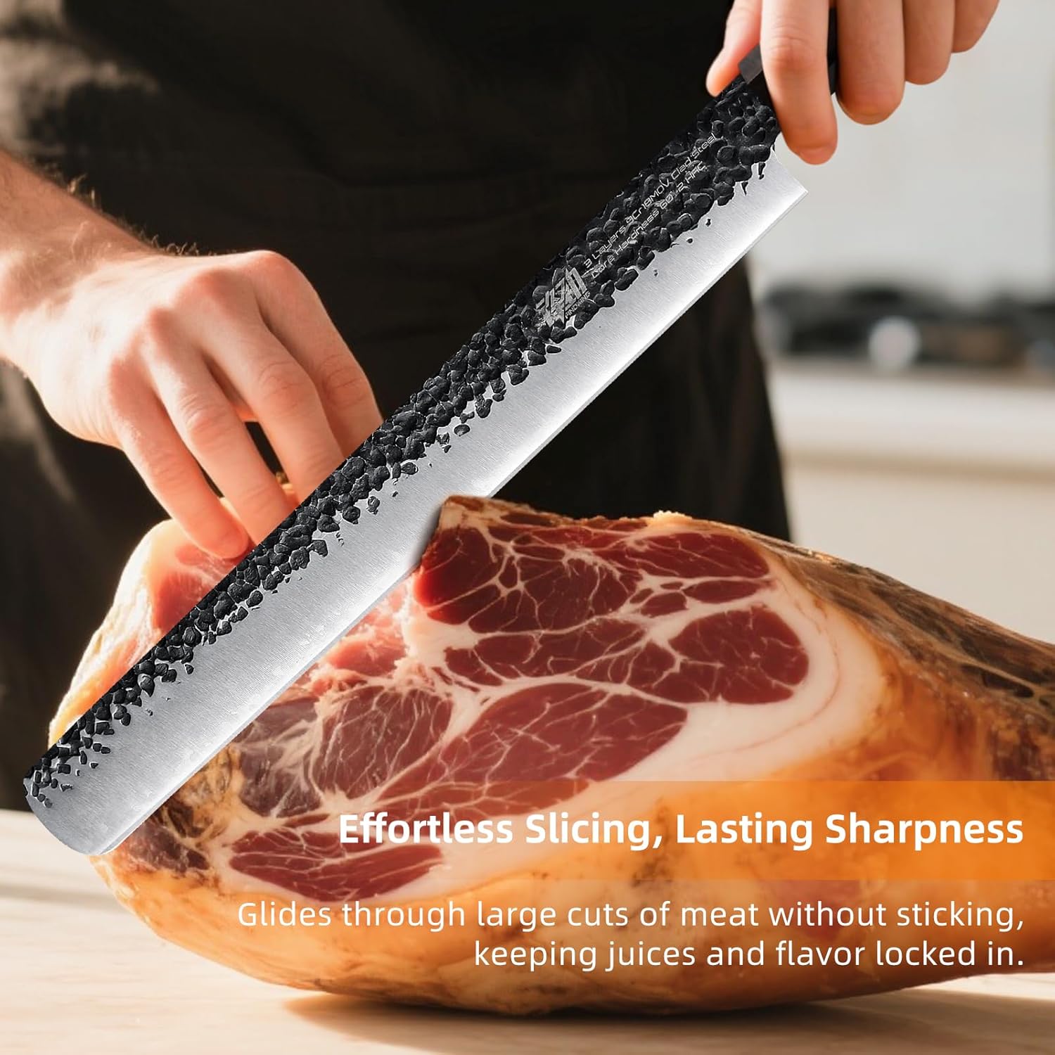 FINDKING Brisket Slicing Knife 12 Inch, Sharp Carving Knife for Meat, BBQ, High Carbon Steel Blade, African Rosewood Octagonal Handle (Dynasty Series)