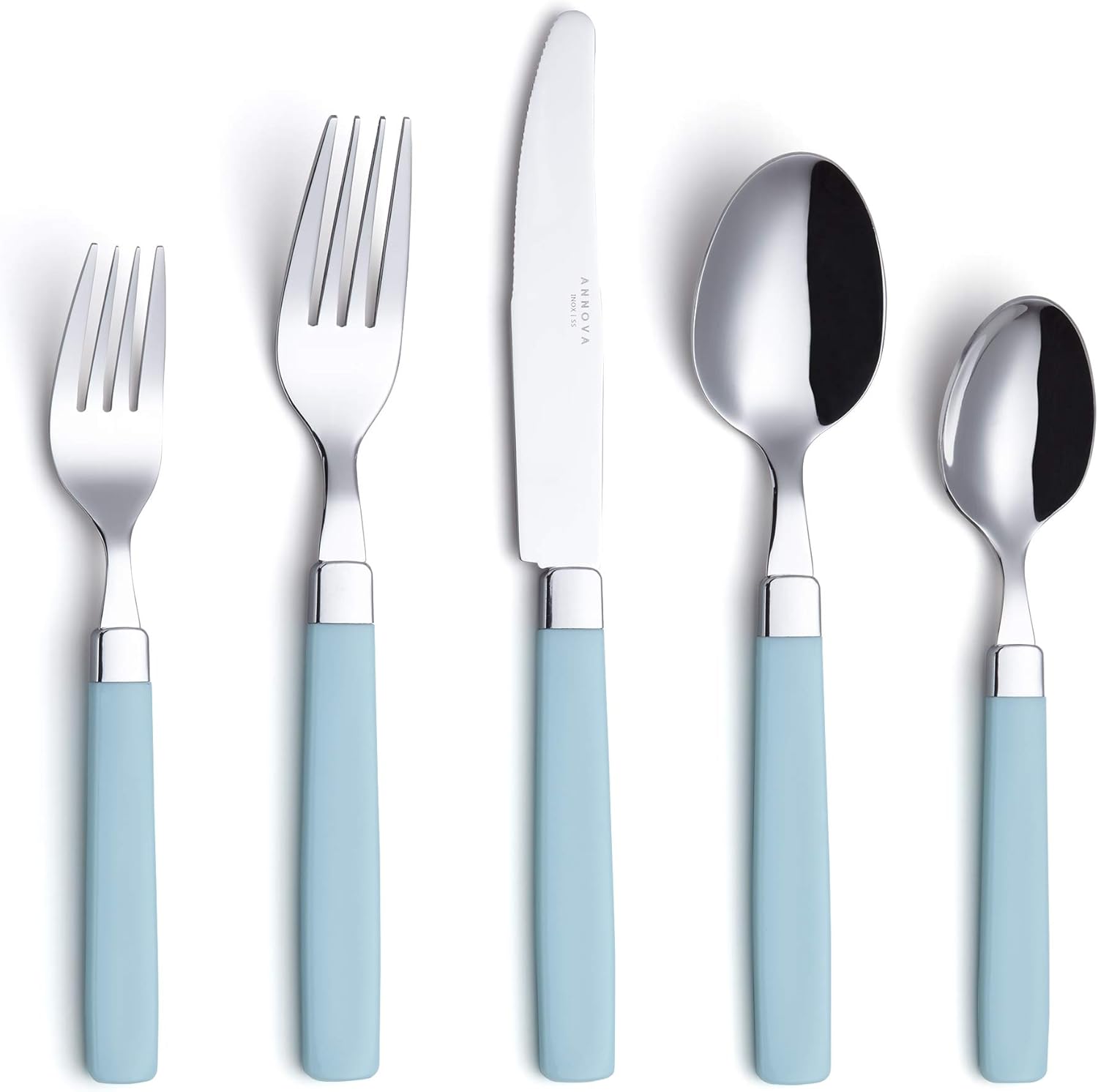 ANNOVA Silverware Set Stainless Steel Colorful Tableware Kitchen Flatware Set Utensils, Includes Dinner Knives, Forks, Spoons, Salad Forks & Dessert Spoons (Turquoise, 20 Pieces)