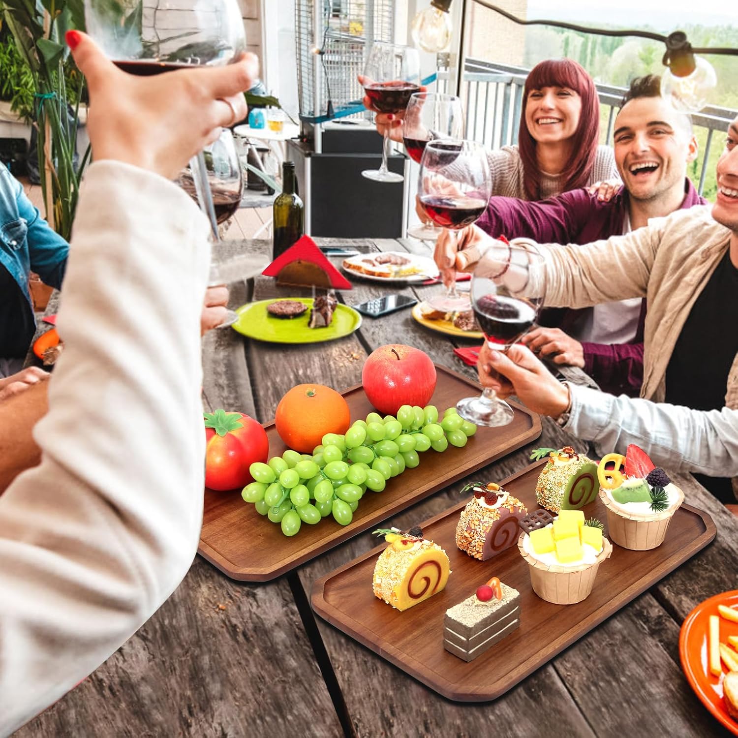 Renawe Set of 2 Wooden Serving Platters Food Tray Charcuterie Boards Large Acacia Wood Trays for Kitchen Counter Wood Charcuterie Platter Dish Candle Tray Fruit Cheese Serving Board