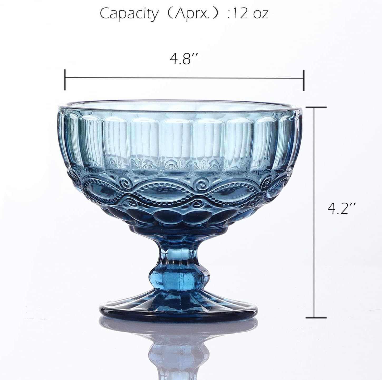 VanEnjoy Deep-blue Vintage Pressed Pattern Glass Ice Cream Cups/Dessert Bowls - Set of 4,12 Oz
