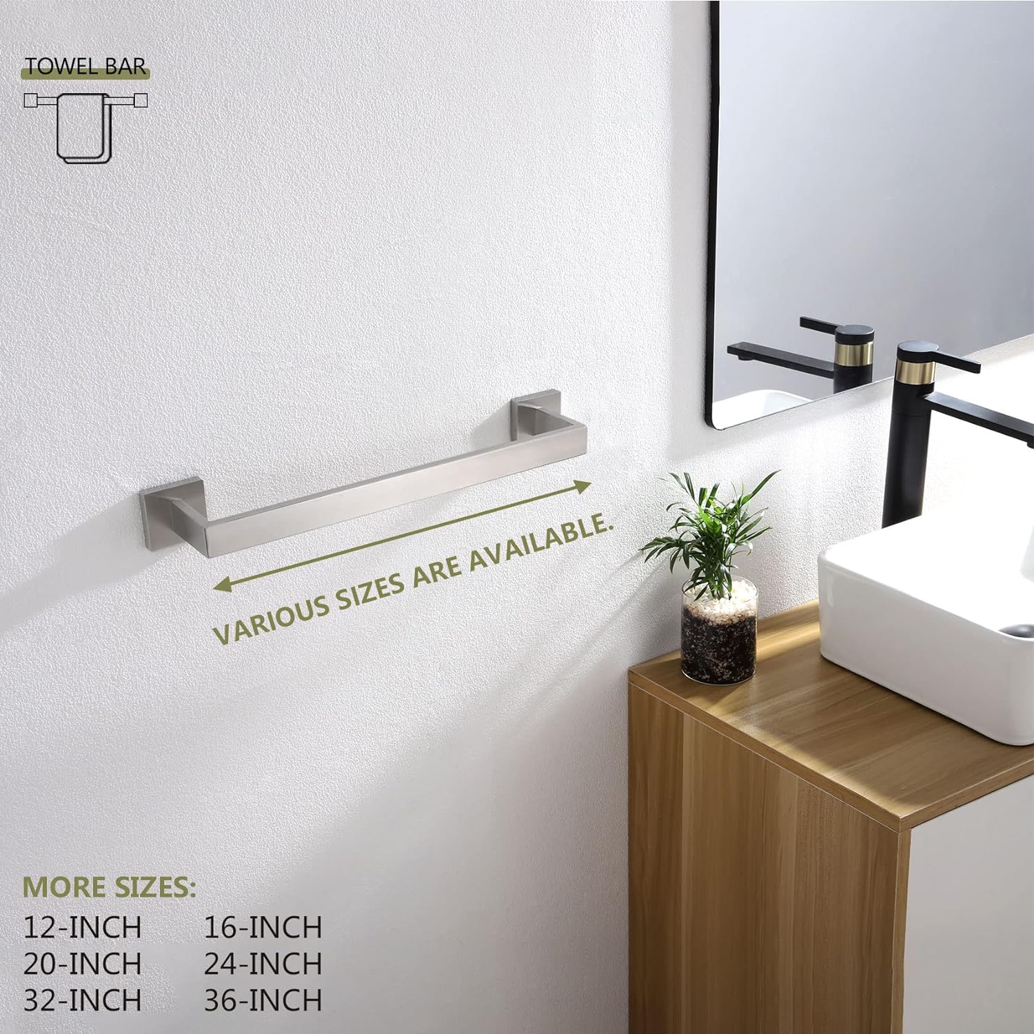 KOKOSIRI 16-Inch Single Towel Bar, Bathroom Kitchen Towel Holder, Wall Mounted SUS304 Stainless Steel Towel Rack, Brushed Nickel, B4003BR-L16